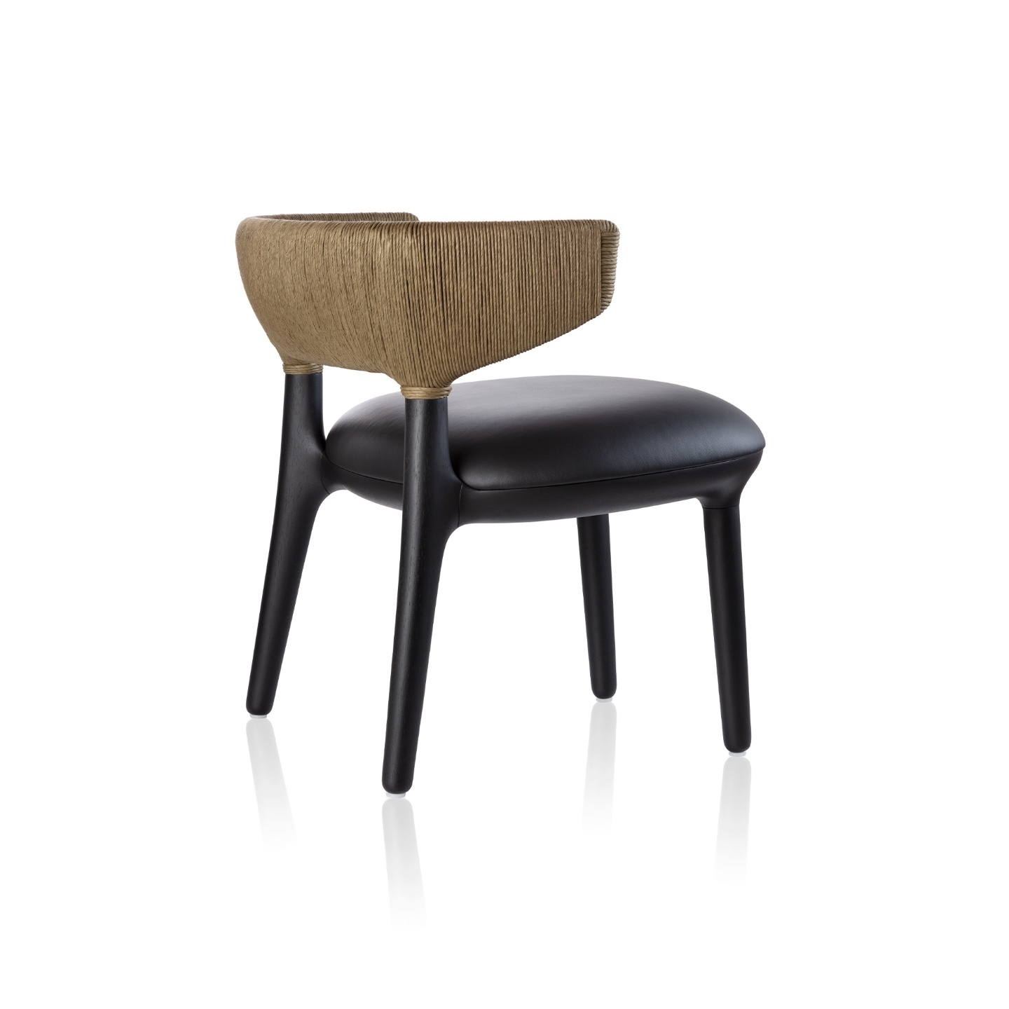 Structure: Solid wood, stained solid wood Seat: Upholstered in fabric or leather Backrest: Solid wood, paper cord
