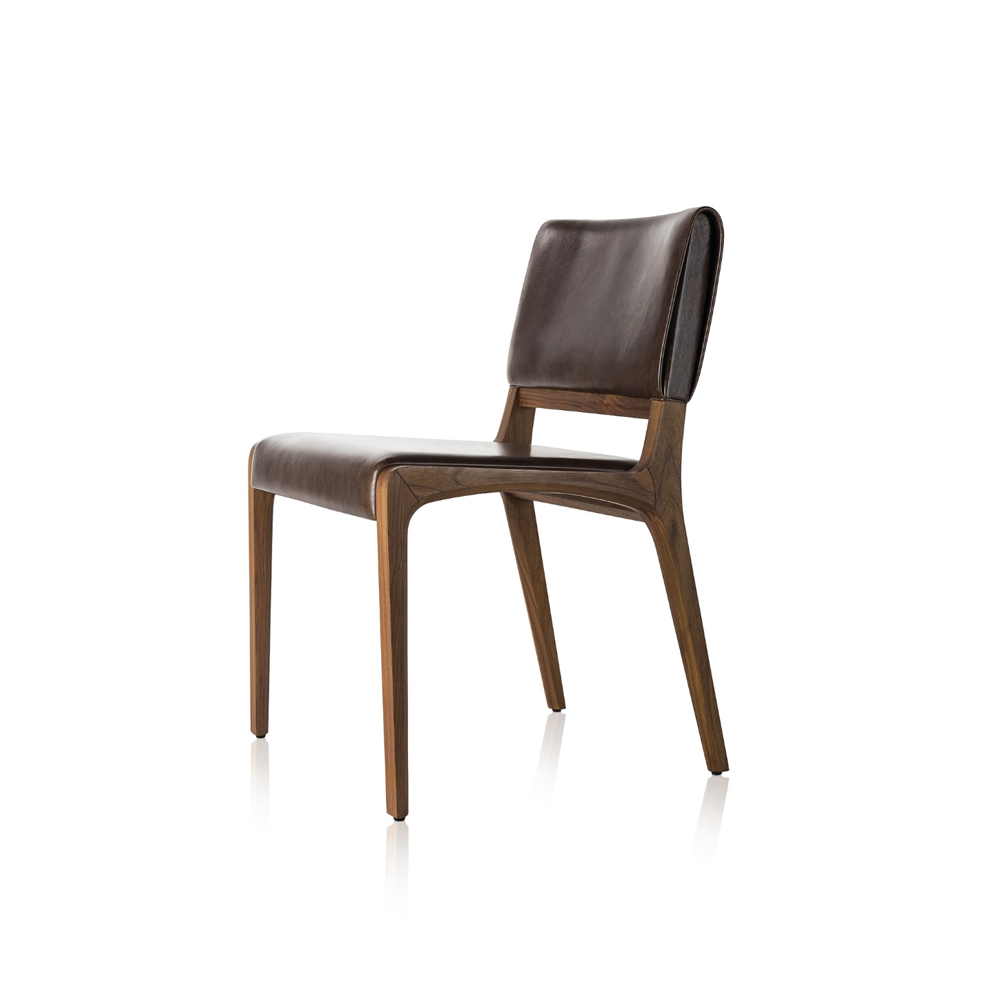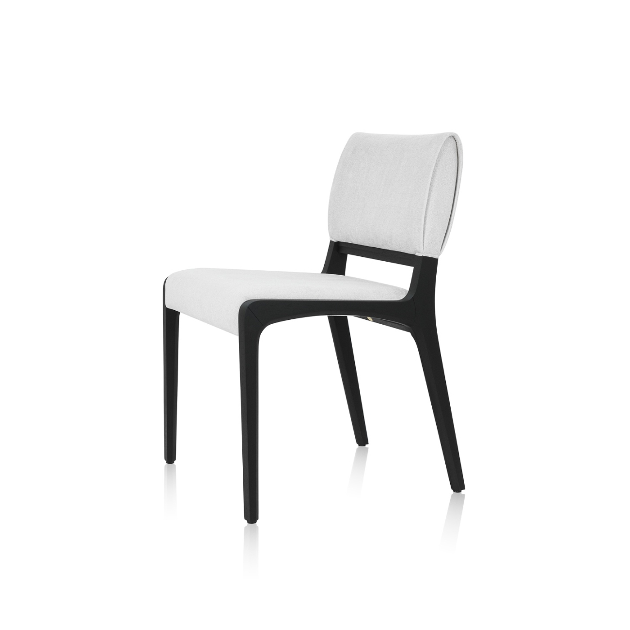 Structure: Solid wood, stained solid wood Seat and backrest: Upholstered in fabric or leather