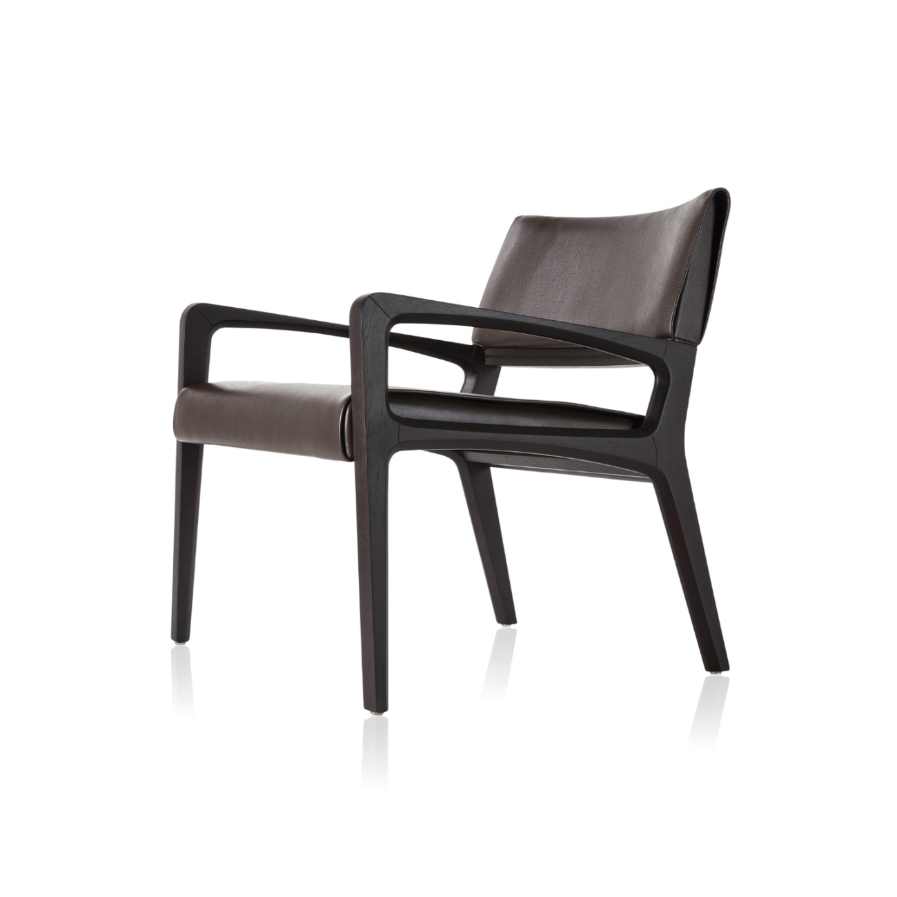 Structure: Solid wood, stained solid wood Seat and backrest: Upholstered in fabric or leather
