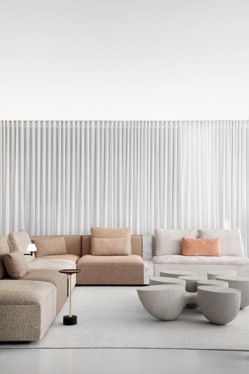 Freedom of aesthetic expression, modulation and customization characterize this modular system. The pure, orthogonal shape of the body is balanced by the upholstery of the seat and back which is loose and laid back. A combination that results in an elegant perception of the whole and infinite possibilities of configurations.