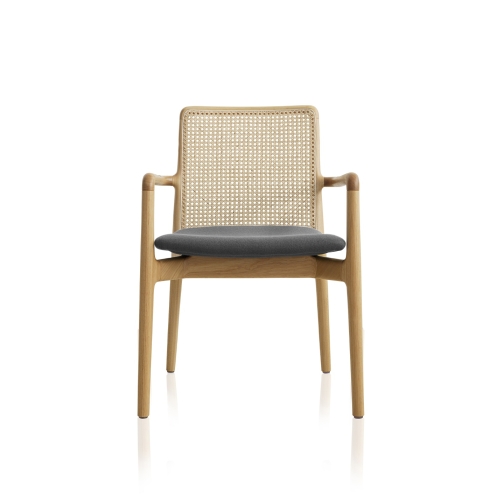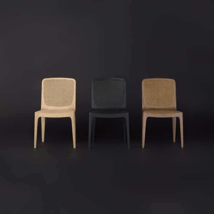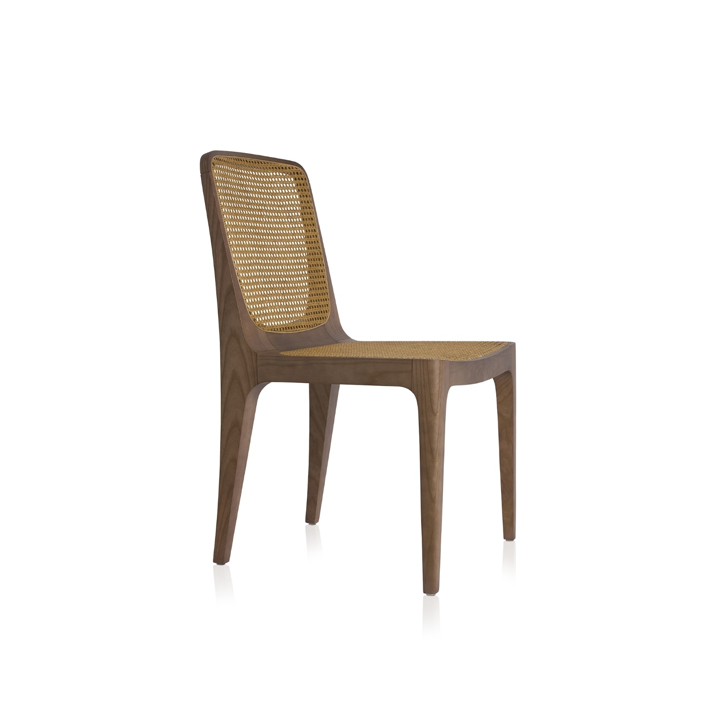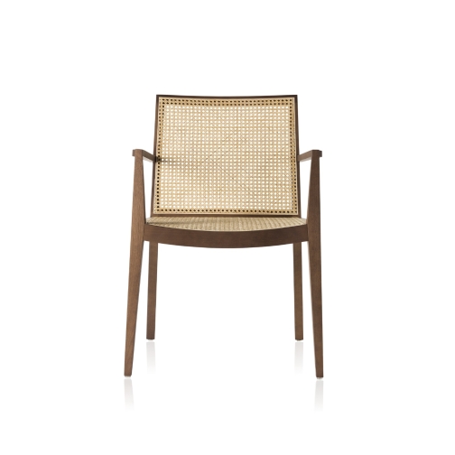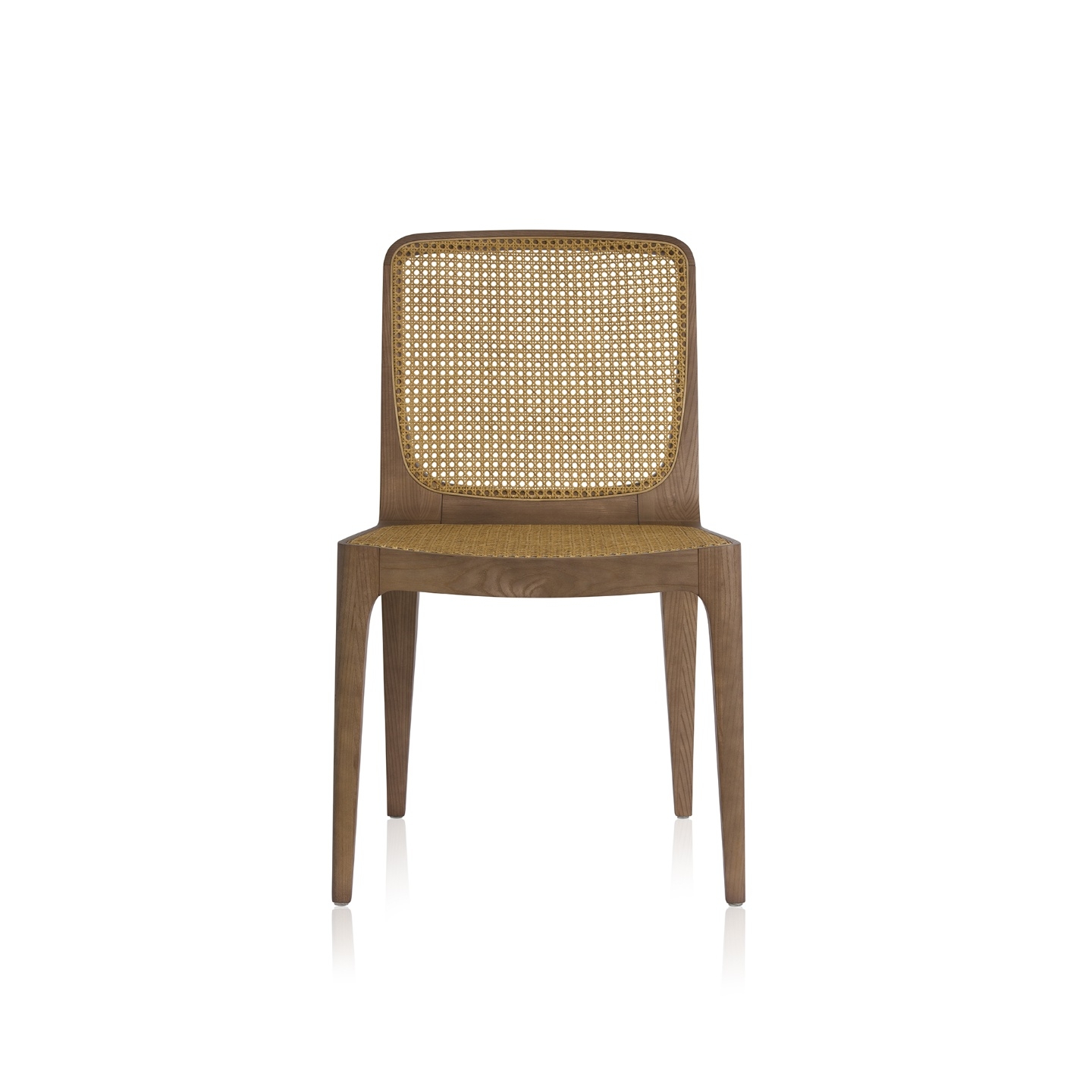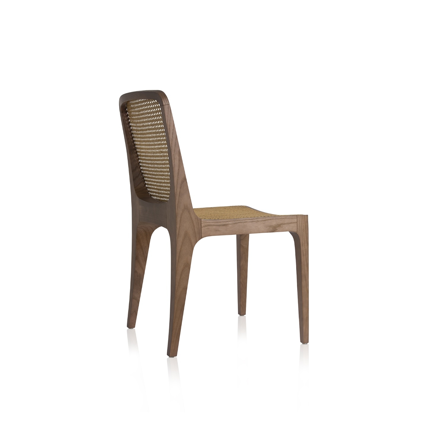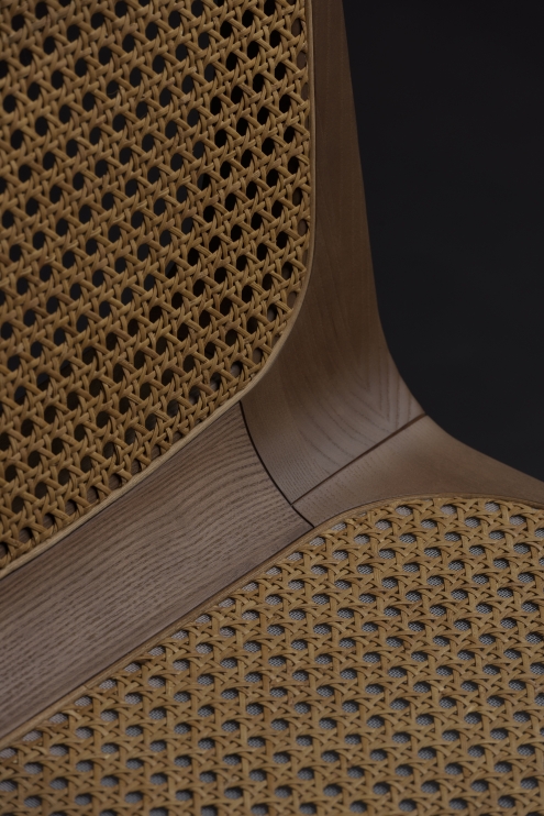 Structure: Stained solid wood Seat and backrest: Rattan straw, aramid straw