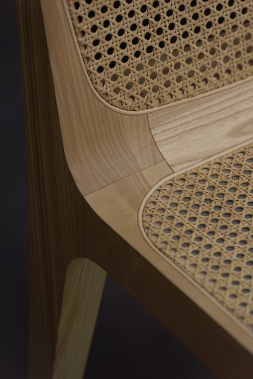 Structure: Solid wood, stained solid wood Seat and backrest: Rattan straw, aramid straw, upholstered in fabric or leather