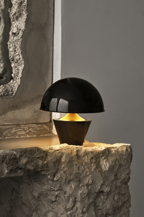 A table lamp with a reduced size and height suitable for different uses, such as dining tables, office, countertops and bedside tables. BOTTON has rounded organic shapes and a dome that appears to float over the base. Its lighting is warm, that is, light and radial.