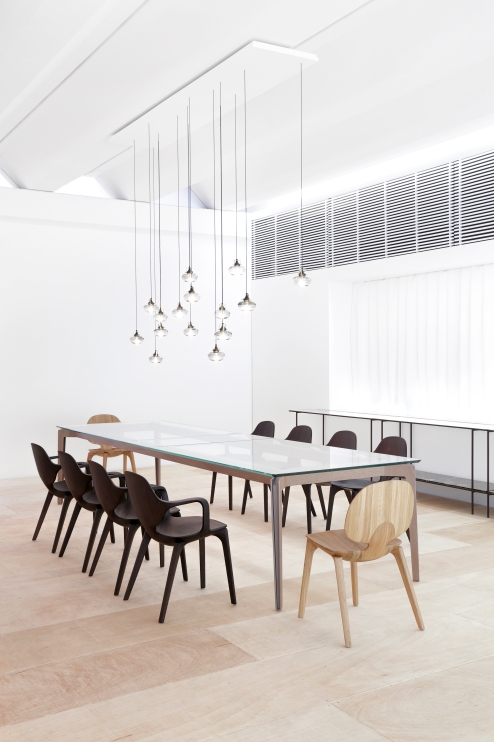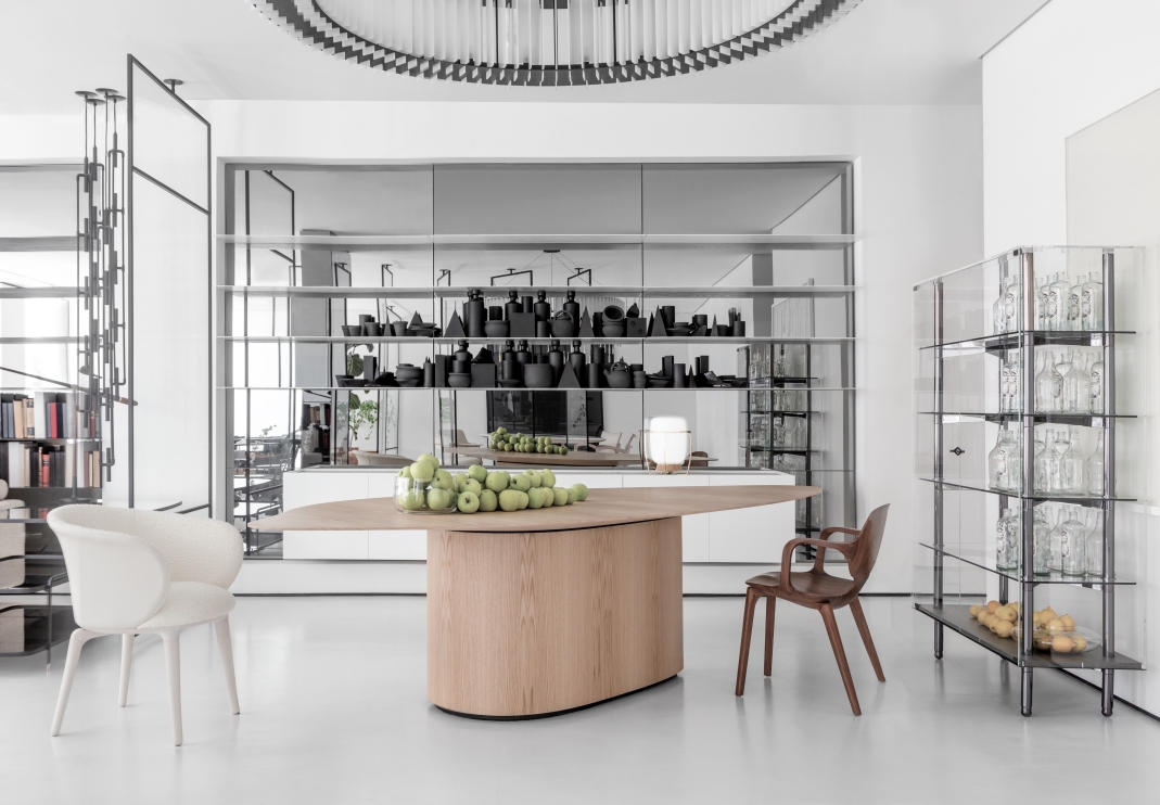 The fluid design, inspired by Cycladic art, lends the chair lightness and delicacy. The anatomical shapes support the entire torso, while the twists and beveled edges seem to transcend the wood's resistance limits.