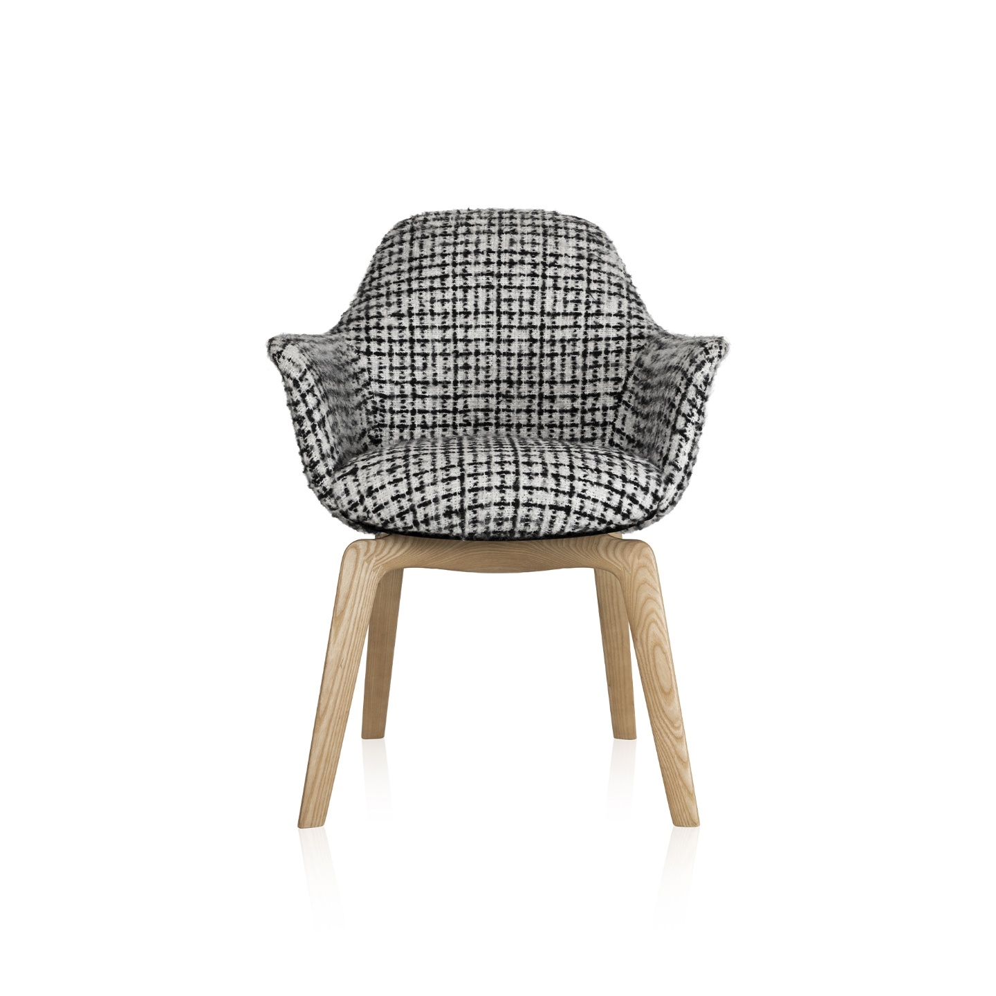 Legs: Solid wood, lacquer, stained solid wood Seat and backrest: Upholstered in fabric or leather Armrests: Upholstered in fabric or leather