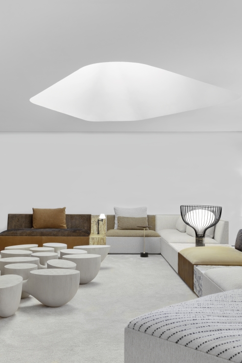 The harmony between materials such as metal, glass and marble, as well as the precision in details, make the GHOST luminaire resemble a piece of jewelry. Its organic shape and radial geometry is sculptural, and makes the piece stand out from the main function of lighting, and generates versatility for different interpretations for any environment.