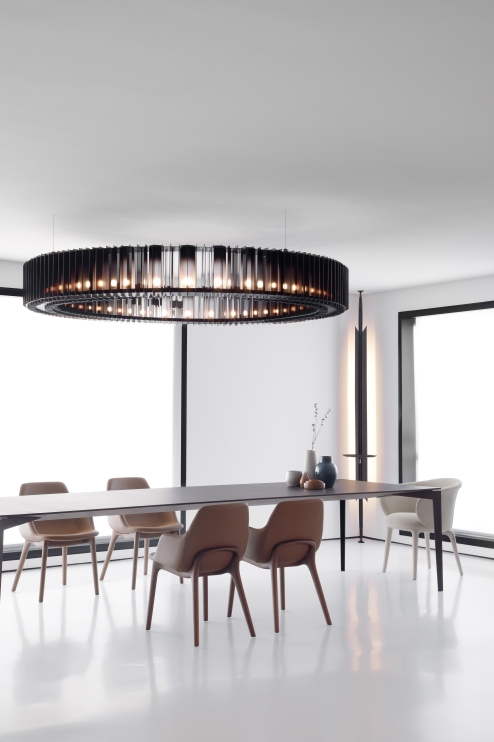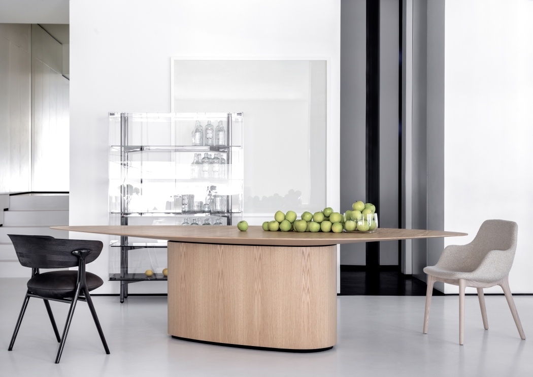 The shell shape prioritizes the comfort and its curves translate the perfect balance between shapes and volumes of furniture of modernist traits.