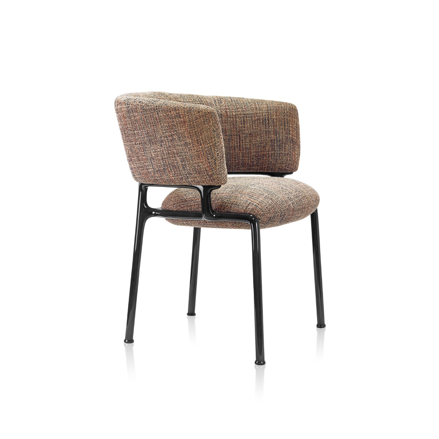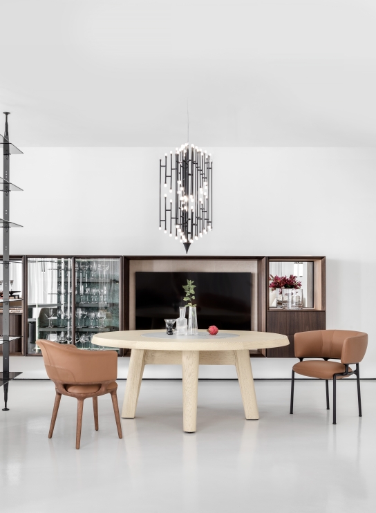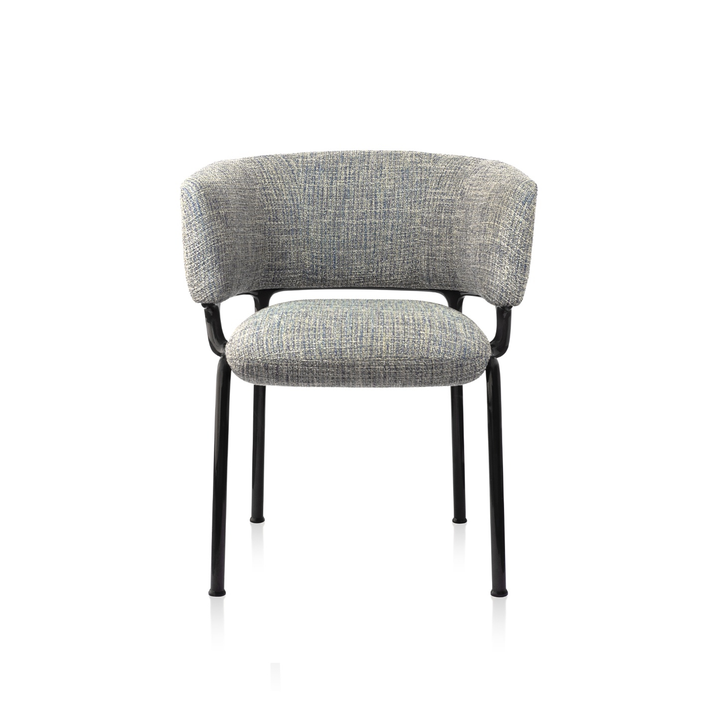 The visual harmony, the result of the balance of masses and a perfect circular geometry, make the piece sophisticated and elegant. The voluminous seat entices to be surrounded by the metal frame, while the backrest supports the back and arms for the comfort of those who sit on it.