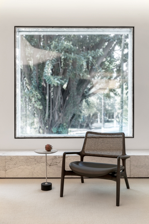 The balance of yesterday and today precisely translates into the orchestrated play of fluid lines, thickening and thinning to form a pleasing rhythm. Rattan is symbolic of the lightness of modern Brazilian furniture, and its gentle curves provide both robustness and subtlety.