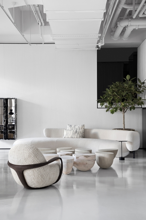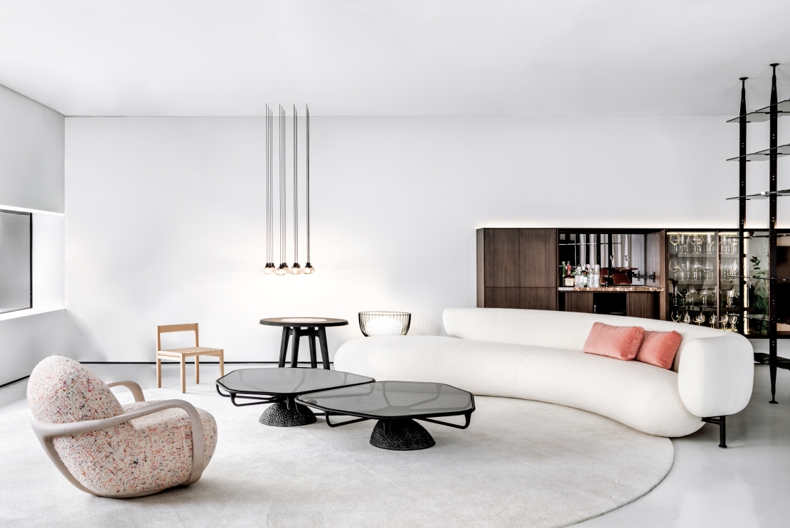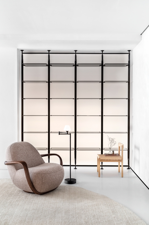 Comfortable to look at and sit in, generous in ergonomics and feel. The converging lines invite the eye to wander along tangents.