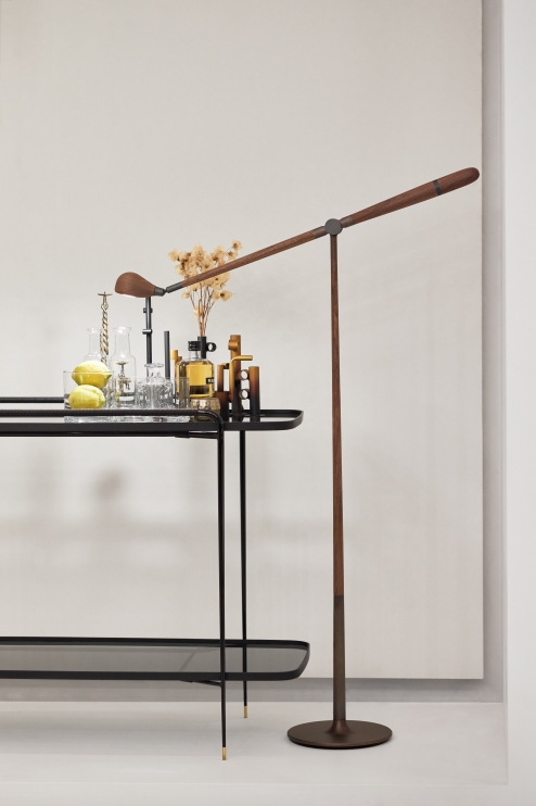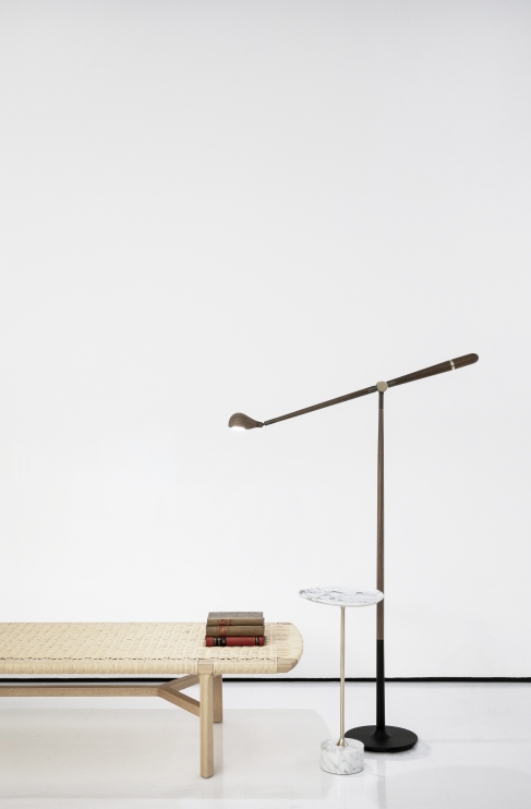 All of the elegance of wood is rendered in this piece. The balance between its materials guarantees beauty and identity. Functionally, it is easy to use and to interpret. The calm and elegant design is easy to interpret and, in addition to the possibility of regulating the direction of the light, its light weight and delicate nature of its shapes enable it to communicate naturally with all of the objects in its context.