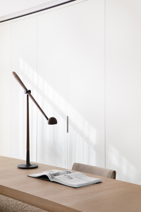 The balance between wood and metal ensures beauty and identity. The calm and elegant design is easy to interpret. In addition to the ability to adjust the light direction, the lightness and delicacy of the shapes allow this lamp to communicate naturally with all the objects in its context.