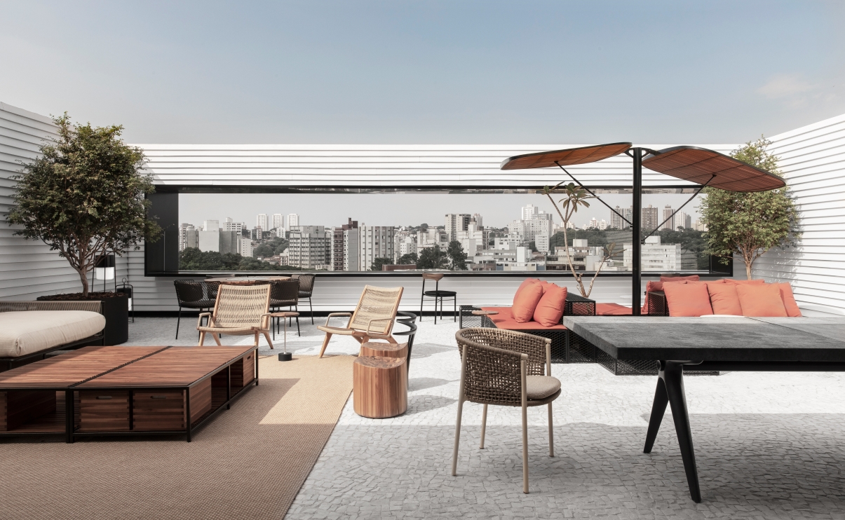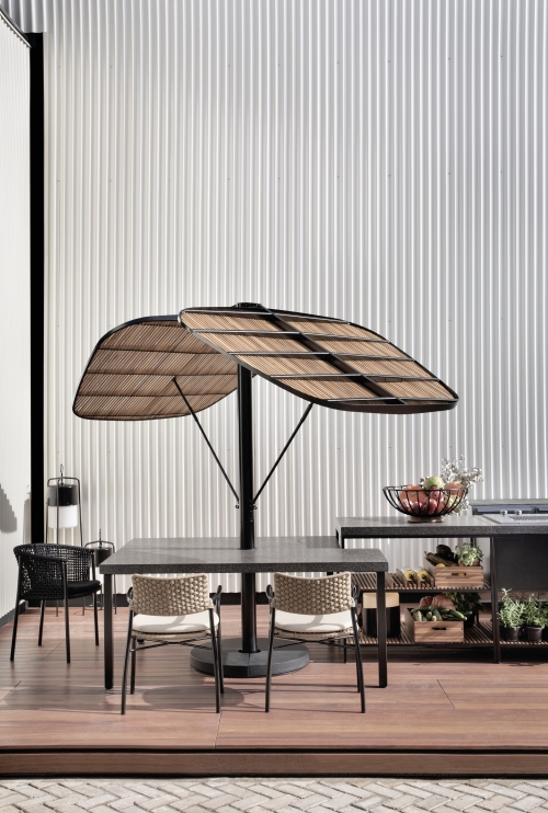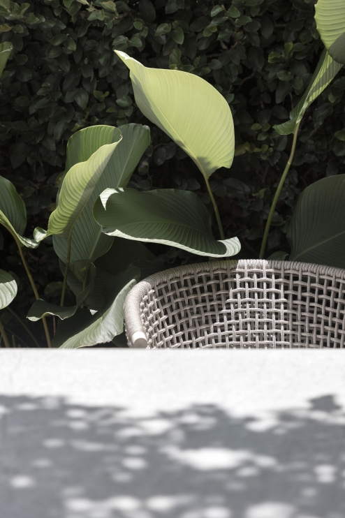 Structure: Metal, electrostatic painting Seat and backrest: Nautical rope Armrests: Nautical rope Superior seat: Upholstered in fabric