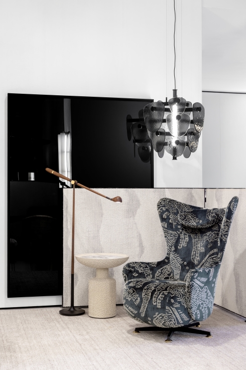 Base: Lacquer, metal Shoes: Special painting, metal Seat and backrest: Upholstered in fabric or leather