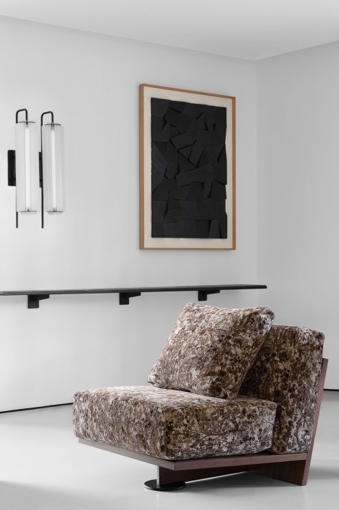 Dos líneas oblicuas definen la idea principal del diseño, estableciendo desde el principio la intención de crear un sistema de asientos —compuesto por un sillón, un sofá y accesorios— que transmitiera una auténtica sensación de ligereza y fluidez. Este concepto guió el proyecto, culminando en una pieza con una perspectiva sencilla pero atractiva. Las proporciones correctas, combinadas con un diseño preciso, garantizan no solo equilibrio y comodidad, sino que también abren posibilidades para composiciones variadas, proponiendo una pieza versátil y abierta a múltiples interpretaciones. Este enfoque le permite integrarse en los contextos más diversos, destacando por su singularidad y elegancia.
