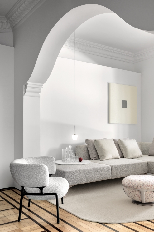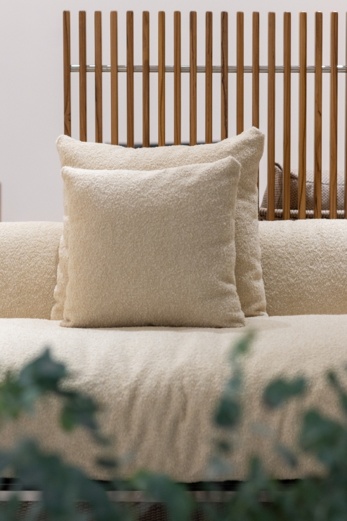 Revestimento externo: Estofado revestido em tecido