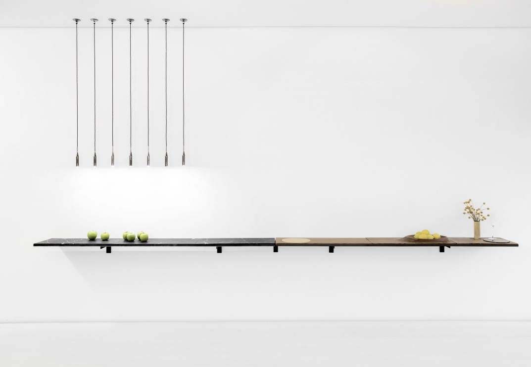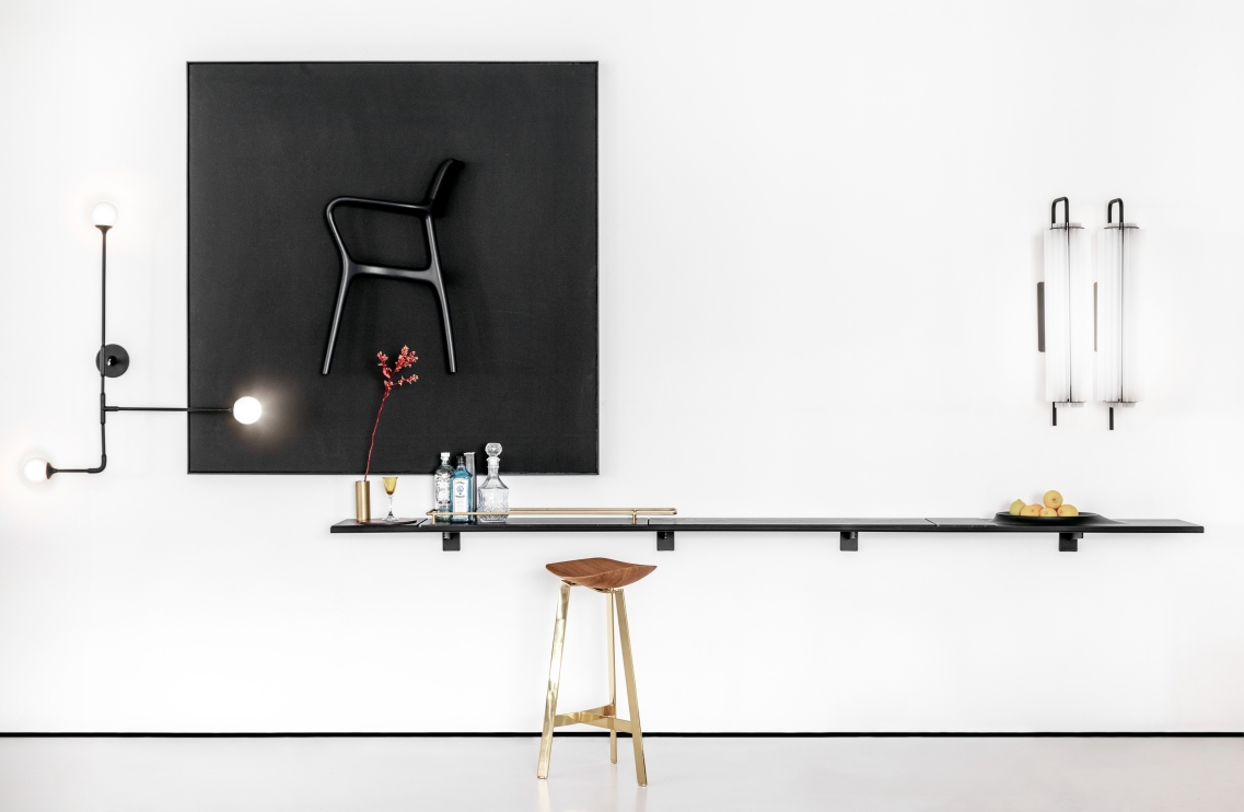A linha AIR é sistema modular que pode ser configurado tanto a partir das propostas pré-determinadas quanto sob medida, de acordo com as preferências usuário. Um sistema dinâmico e de soluções inteligentes. A ideia é que a peça possa sempre ser reinterpretada e renovada, bastando alternar o arranjo dos módulos ou buscar atualizações para o produto, uma vez que a base permanecerá a mesma. As peças podem, ainda, ser utilizadas sem elemento algum, revelando a pureza geométrica e a precisão construtiva.