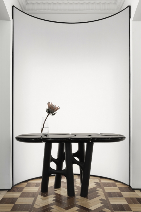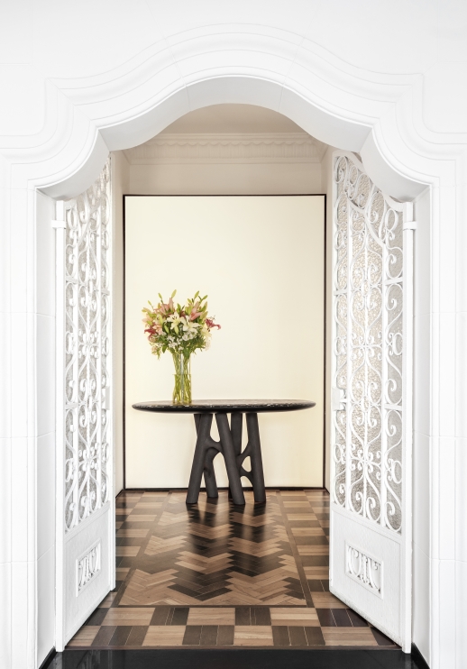 Tampo: Mármore Subtampo: Laca Base: Madeira maciça, madeira maciça tingida
