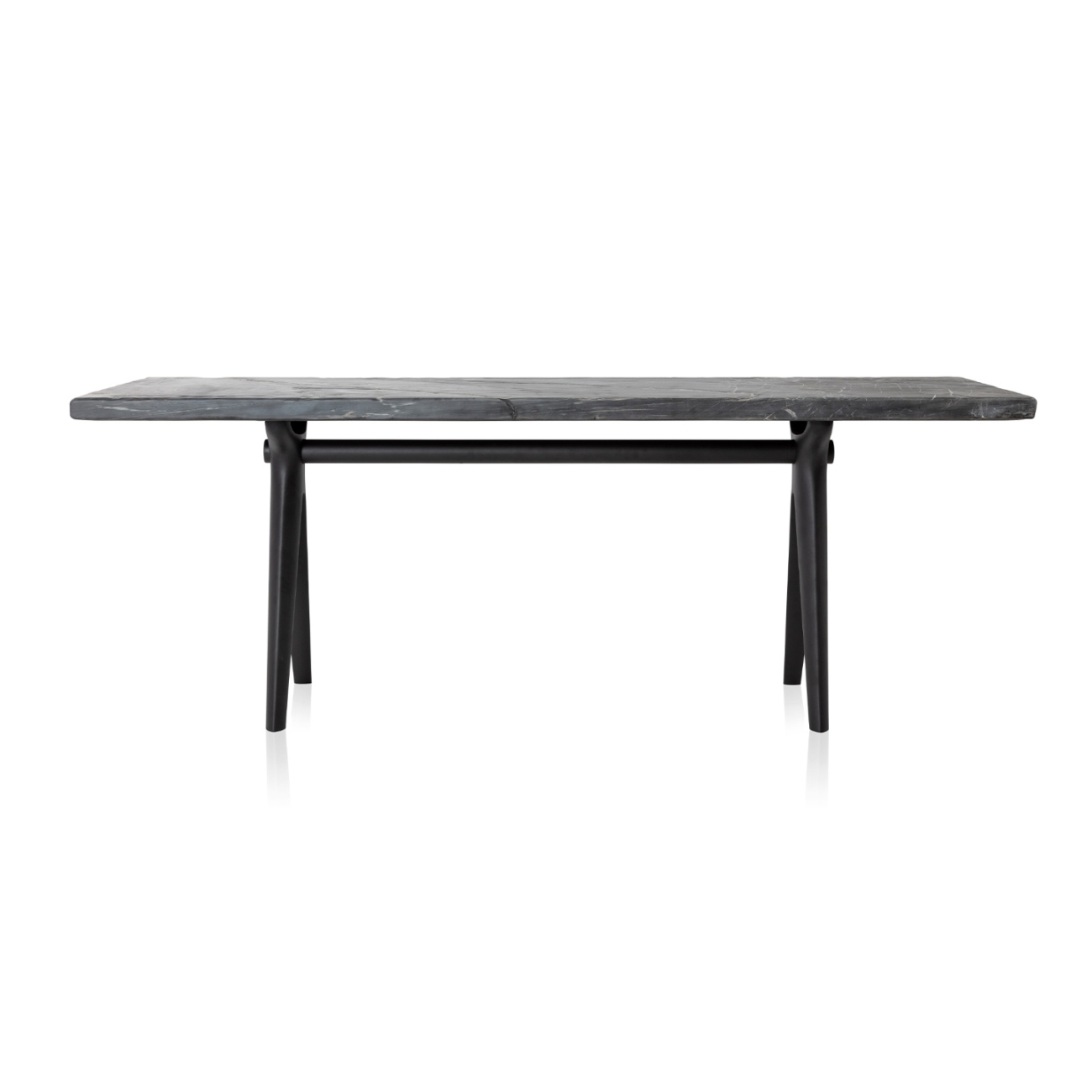 Tampo: Lâmina natural, lâmina tingida, mármore Pés: Madeira maciça tingida Longarina: Laca, pintura especial, metalizado, gane