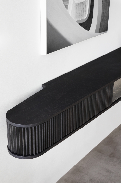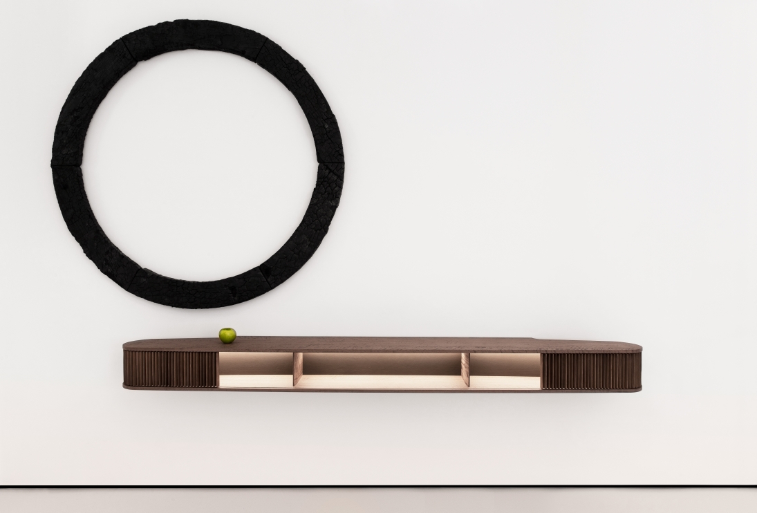 A investigação do duo forma e função dos objetos de apoio e organização, resulta no produto deste exercício: London; o nome escolhido faz alusão ao dinamismo cosmopolita e o tradicional. O tradicional está caracterizado nas esteiras que compõe o fechamento ou abertura do corpo das peças. já a exploração da geometria, a combinação de materiais e resultado de uso conduzem a interpretação do dinamismo.