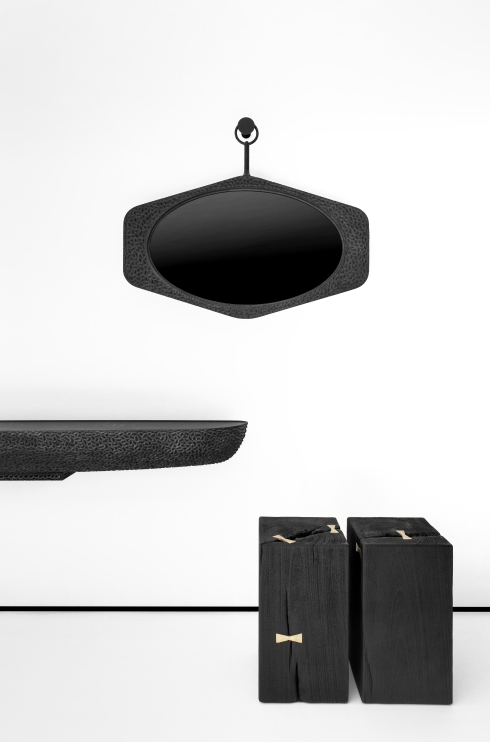 A linha ROCCA tem como característica principal a forma orgânica e a superfície com uma textura que referencia as rochas, do qual traz um resultado instigante do ponto de vista formal. O aparador apresenta uma combinação de técnicas manuais para criar uma identidade única e extraordinária, tornando um objeto atraente, funcional e elegante.