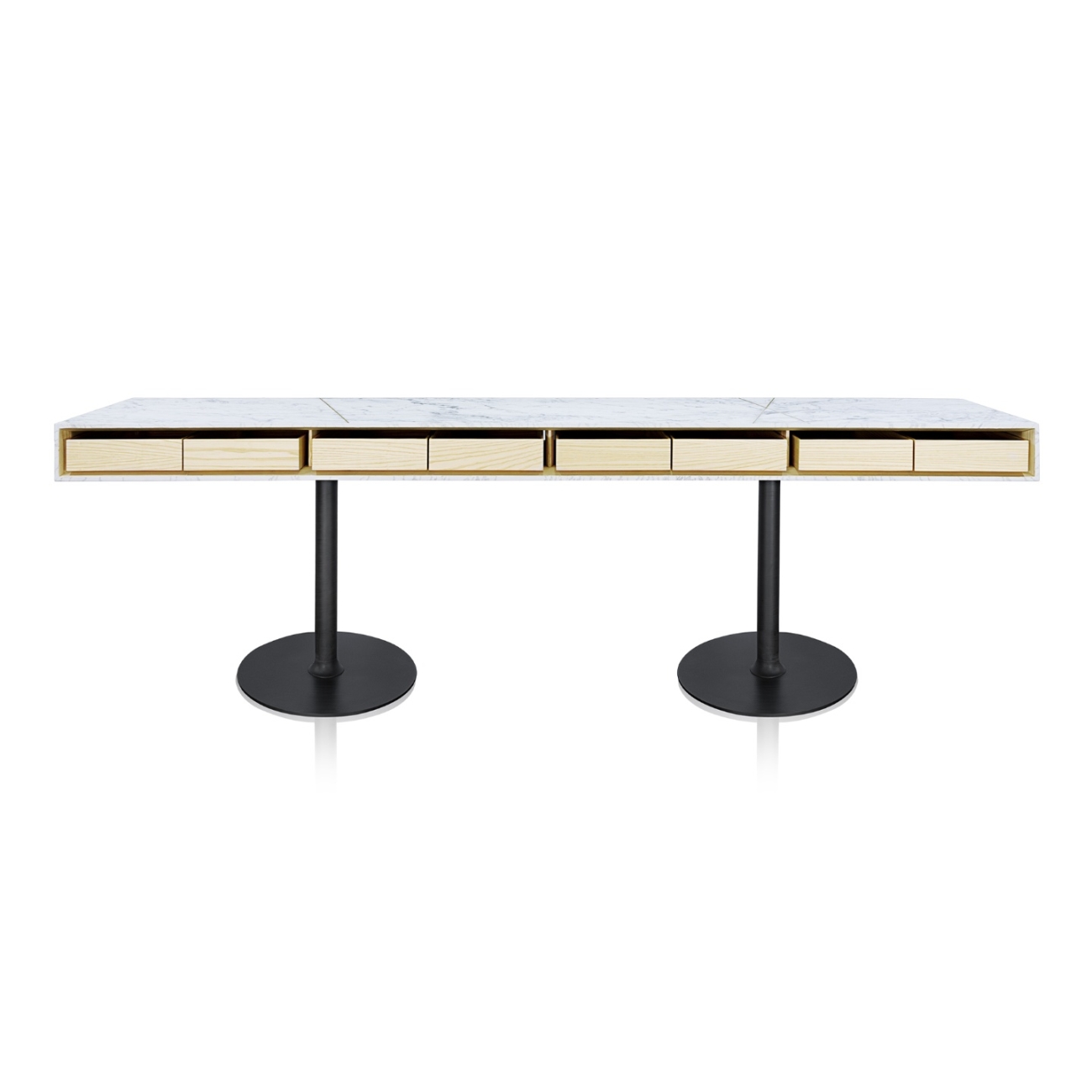 Estrutura externa: Mármore Estrutura interna: Lâmina natural, lâmina tingida Base: Laca, pintura especial, metalizado