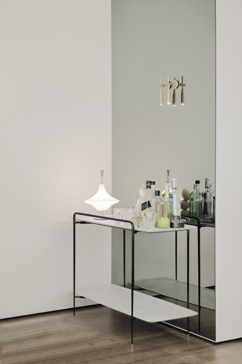 O próprio nome evidencia a proposta da peça: Ponto. Um pequeno cilindro que ao encontrar-se com o cabo de energia, é finalizado em forma cônica. Utilizada separadamente, cria um efeito pontual e ao ser disposta conjunto proporciona maior difusão de luz. Um pequeno elemento que ilumina nas mais diversas interpretações e necessidades.