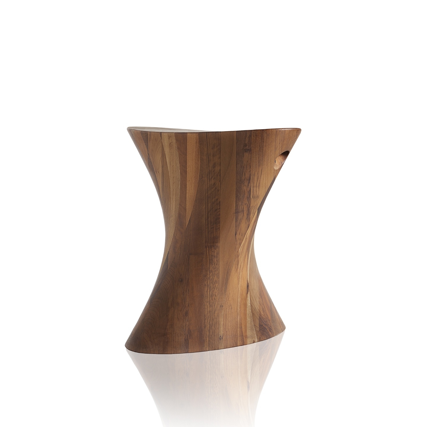 A flexibilidade da madeira e do composto de cortiça possibilitou ao designer Jader Almeida criar a forma ousada do banco Mark. As linhas, seguras e de uma sensualidade contida, se agregam a elementos orgânicos levemente torcidos, conferindo fluidez às peças.