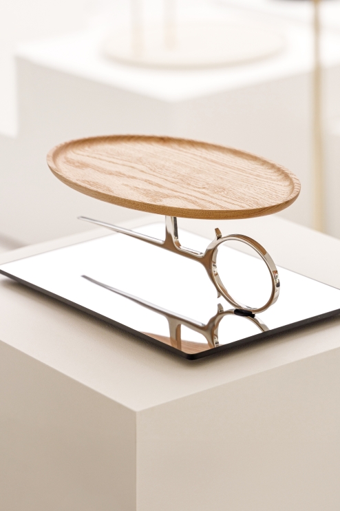 Base: Acrílico Estrutura: Metal Estrutura: Metal Tampo: Madeira maciça, madeira maciça tingida
