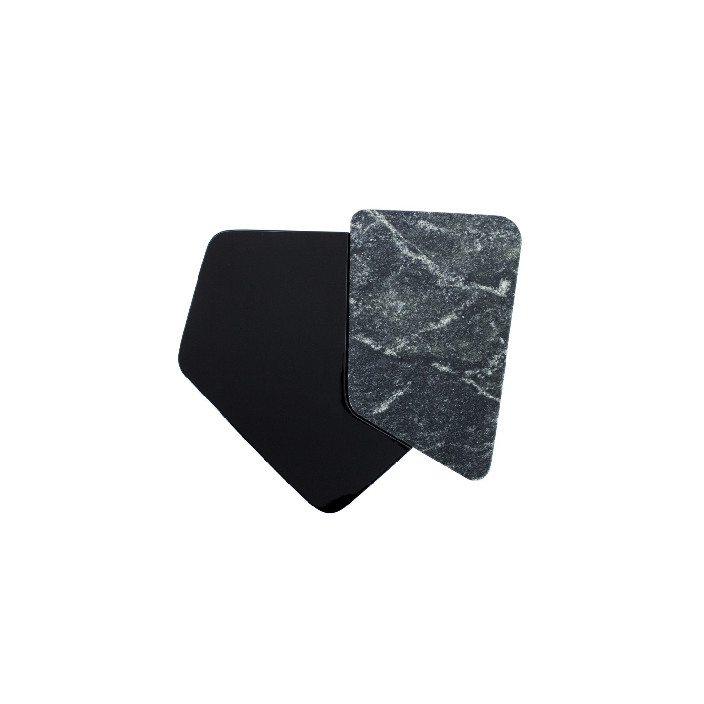 Modelo 01: Uma superfície plana em laca e uma superfície plana de mármore; Modelo 02: Duas superfície plana em laca e uma superfície côncava em laca; Modelo 03: Uma superfície côncava de madeira, uma superfície plana em laca e uma superfície plana de mármore.
