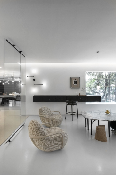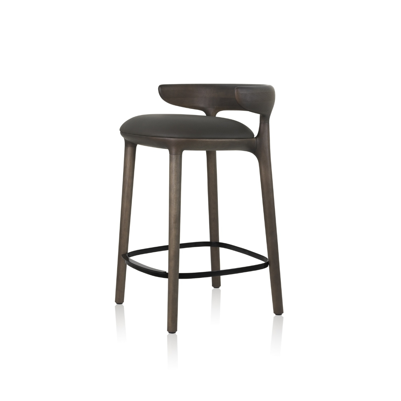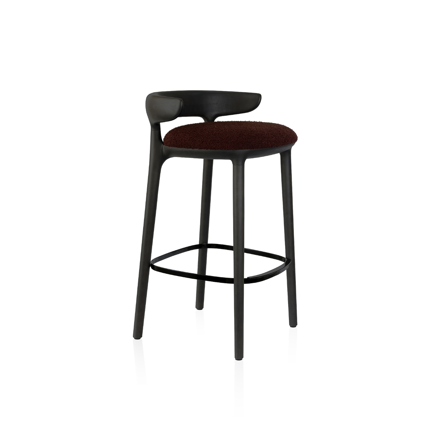 Derivada da cadeira, a banqueta segue o mesmo pensamento, refinado à exaustão da depuração para atingir a curva perfeita e harmônica com um inquestionável conforto.