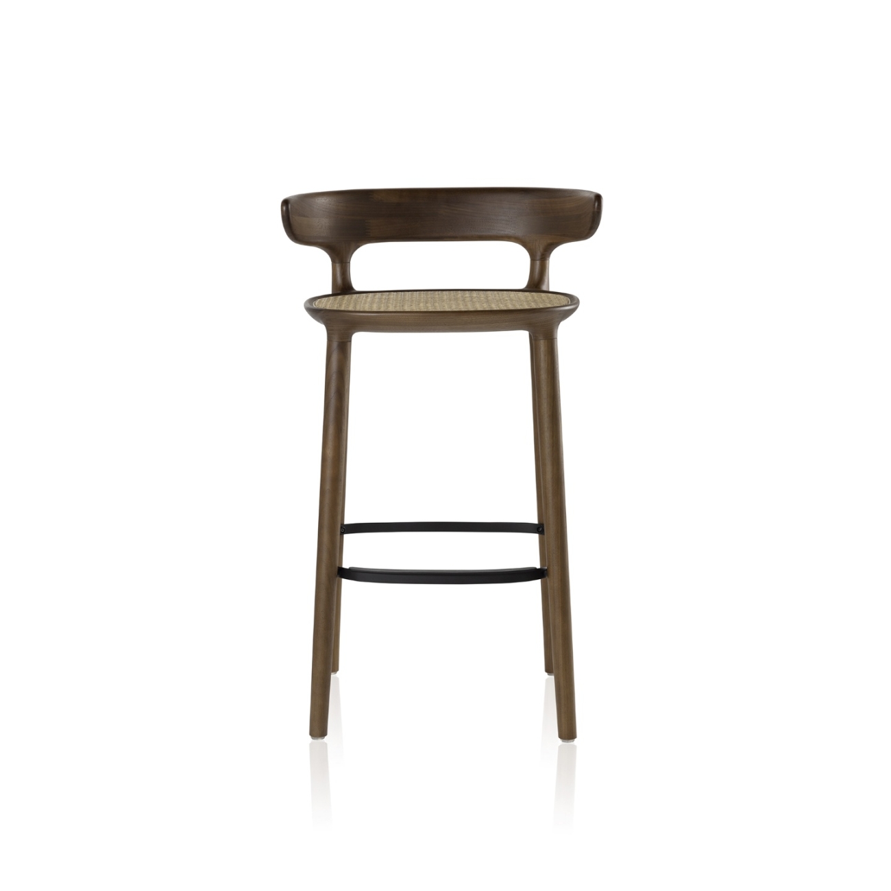 Estrutura: Madeira maciça, madeira maciça tingida Assento: Palha de rattan, palha de aramida Apoio dos pés: Metal, pintura eletroestática