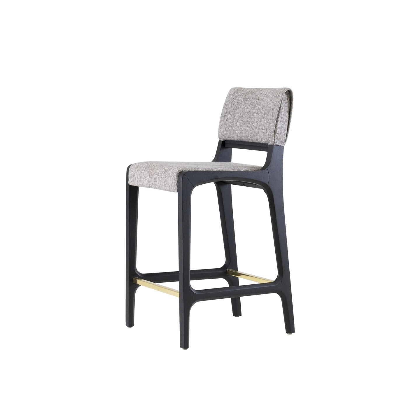 Estrutura: Madeira maciça, madeira maciça tingida Assento e encosto: Estofado revestido em tecido ou couro Apoio dos pés: Metal, pintura eletroestática
