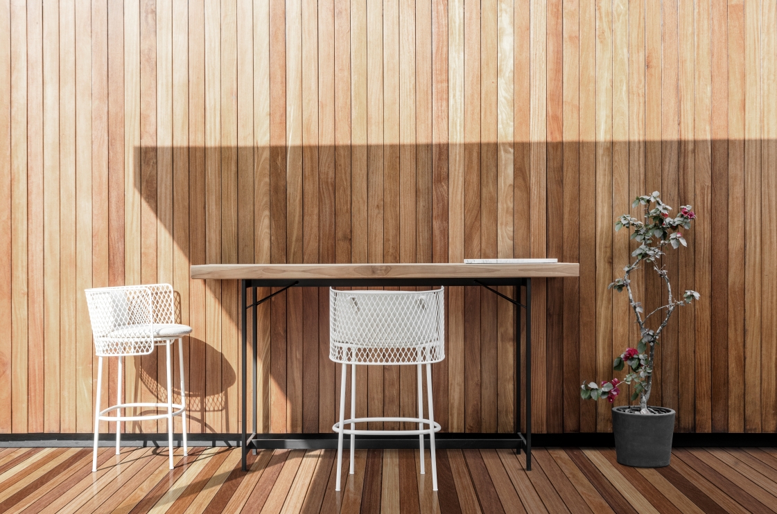 A percepção, pela escala e recorrência de produtos dessa categoria, motivou uma reflexão acerca do tema. O resultado é uma coleção de produtos, cuja abordagem resolve uma grande demanda por peças com escala adequada a varandas de apartamentos ou espaços semiabertos que necessitam desse tipo de mobiliário.