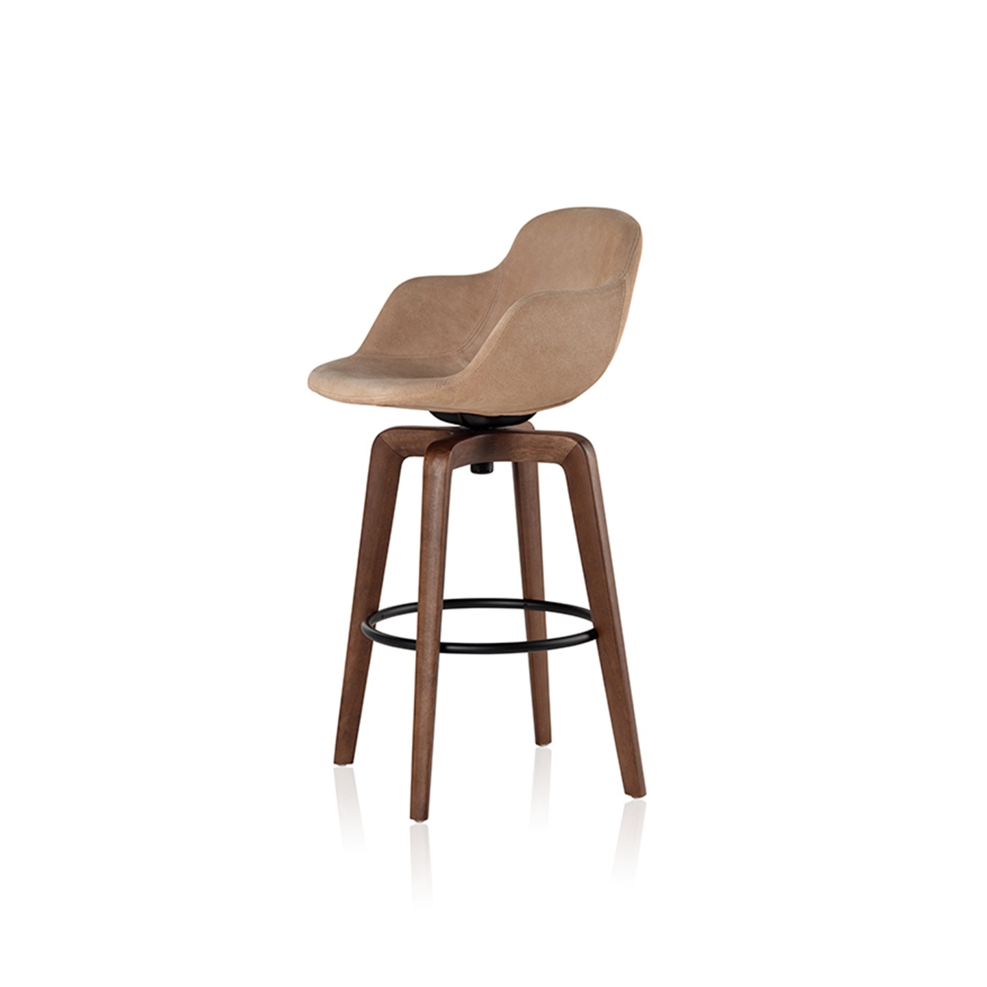 Estrutura: Madeira maciça, madeira maciça tingida, metal, pintura eletroestática Assento e encosto: Estofado revestido em tecido ou couro Apoio dos pés: Metal, pintura eletroestática