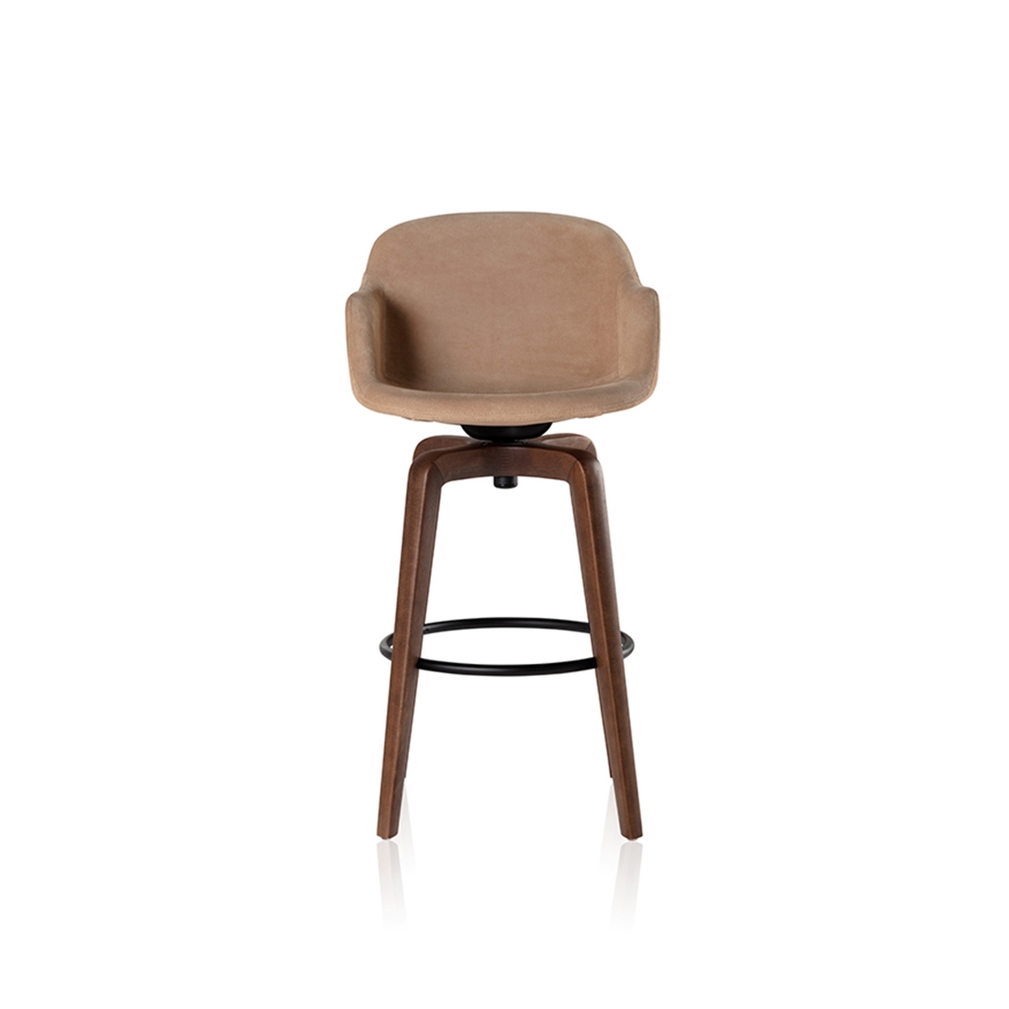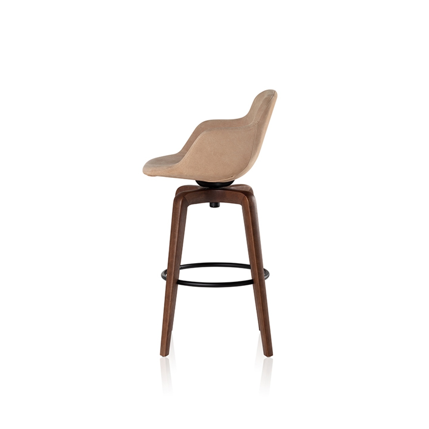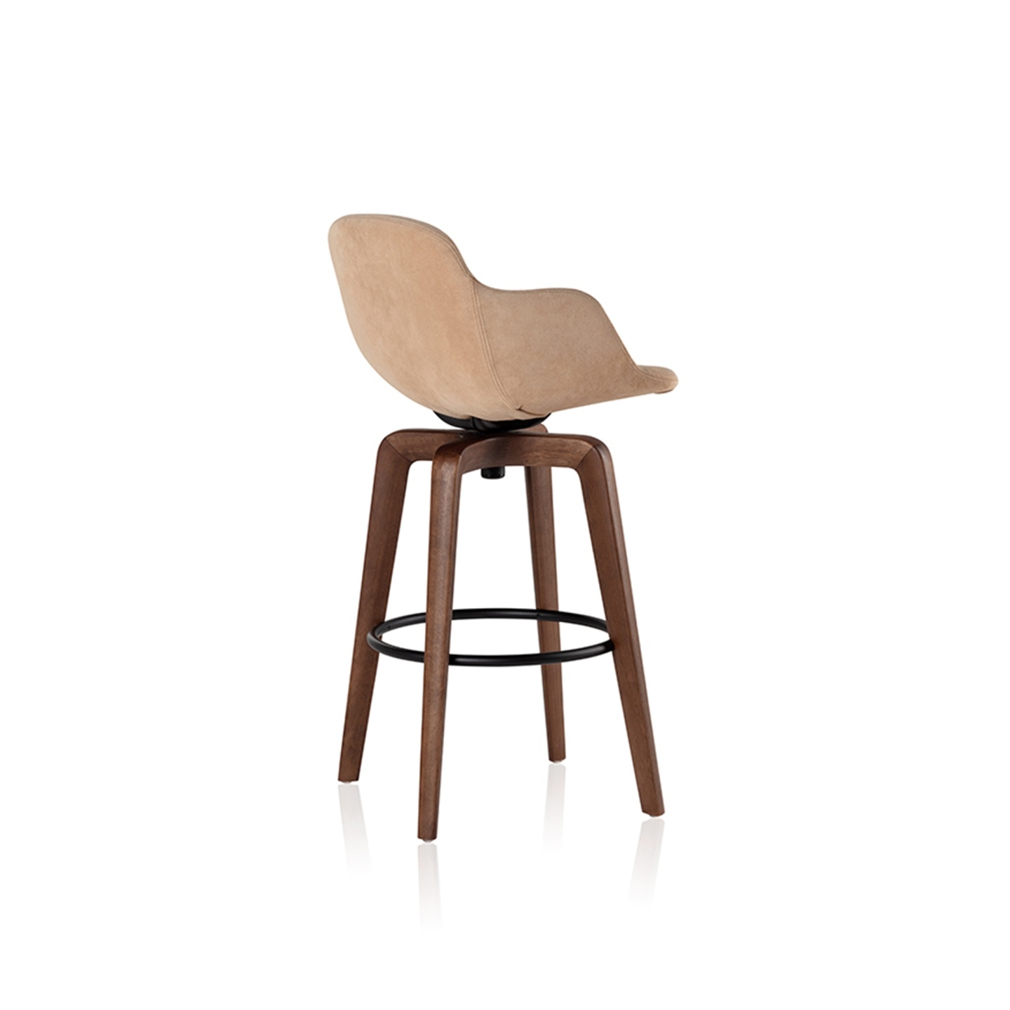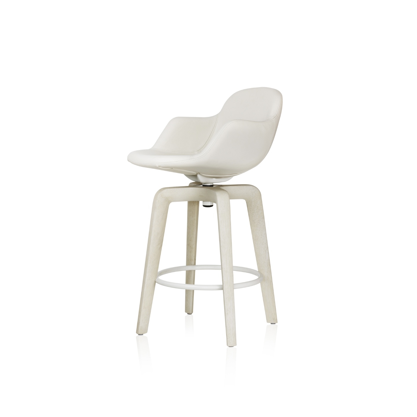 O formato em concha do assento giratório com braços prioriza o conforto, e o suas curvas traduzem o perfeito equilíbrio entre formas e volumes dos móveis de traços modernistas.