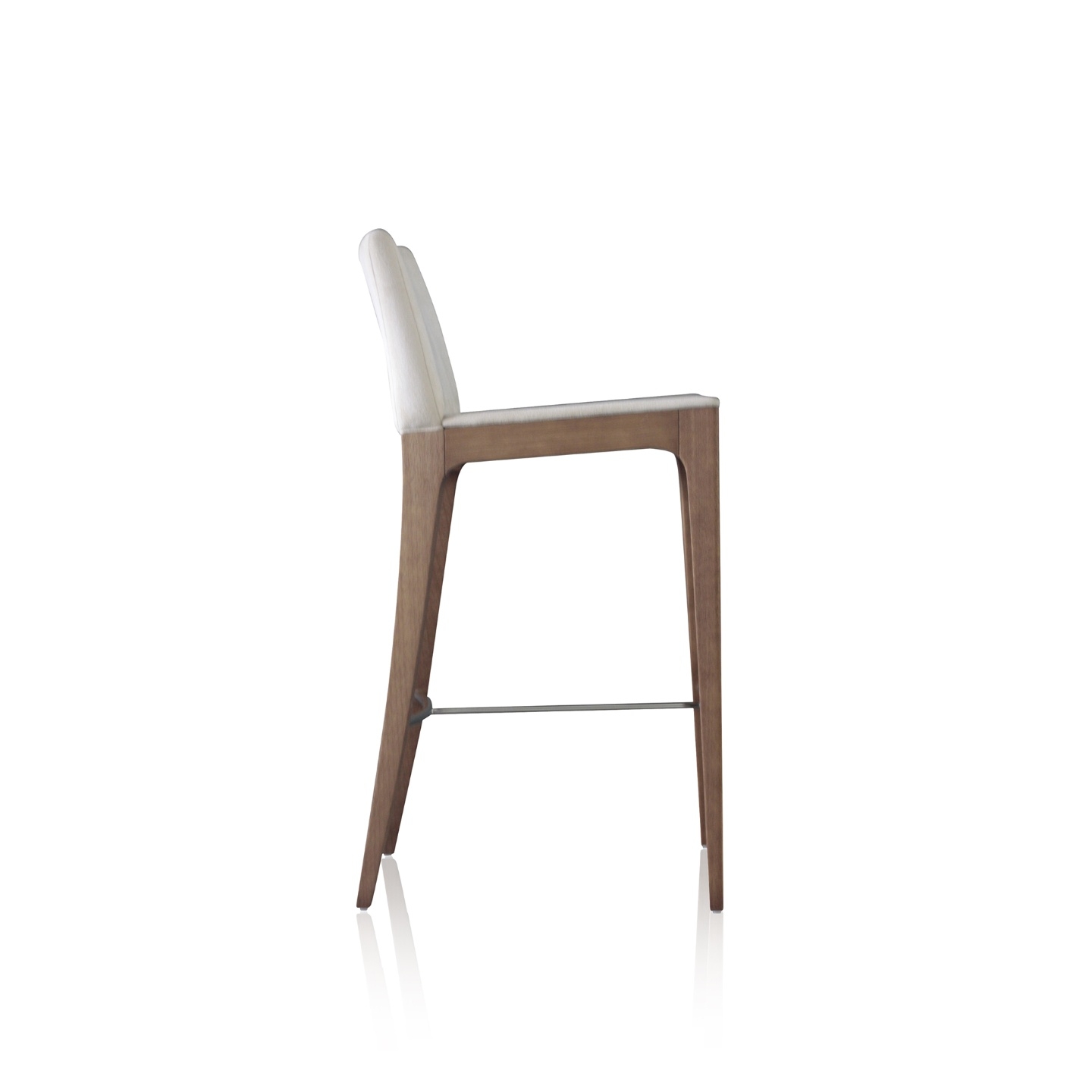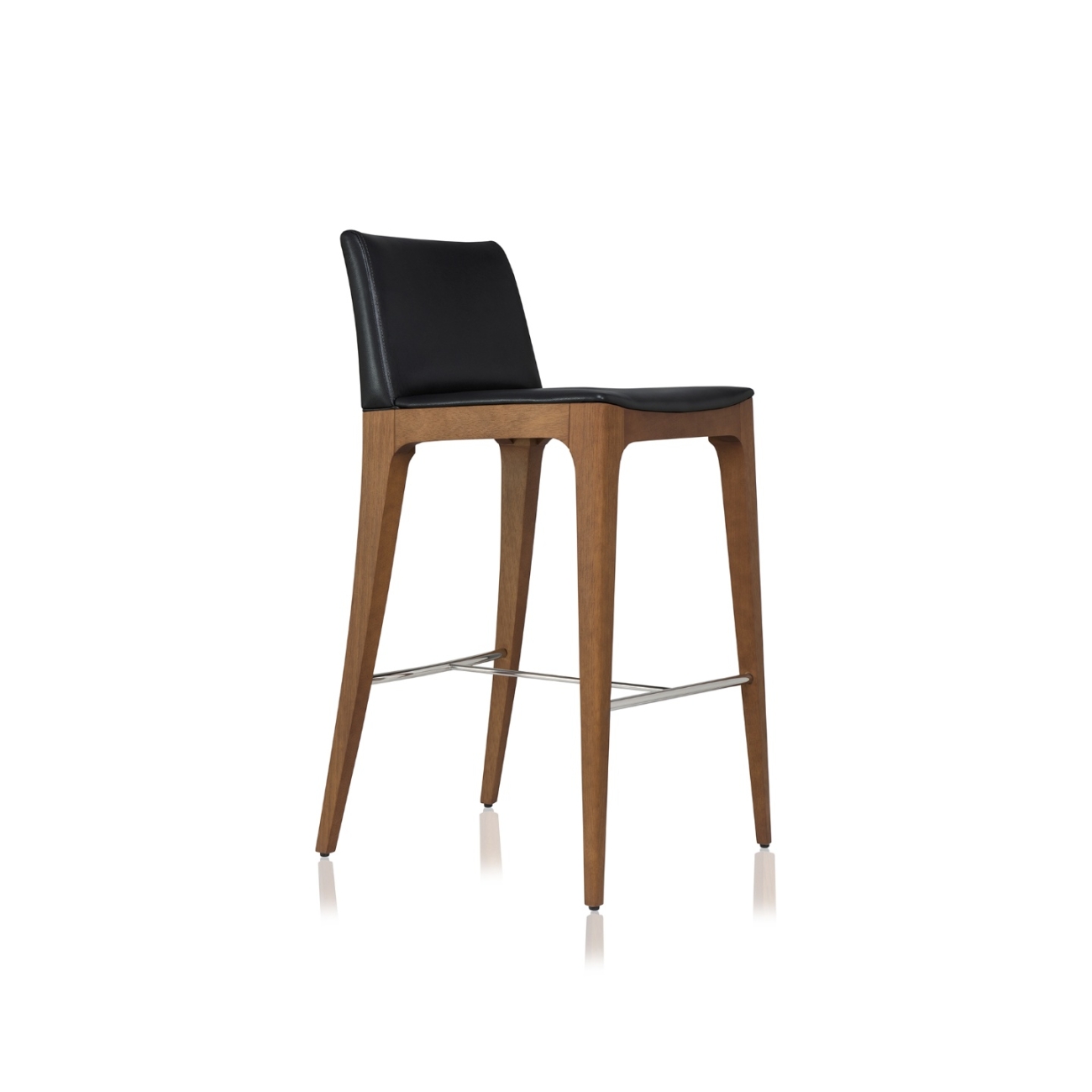 Estrutura: Madeira maciça, madeira maciça tingida Assento e encosto: Estofado revestido em tecido ou couro Apoio dos pés: Metal