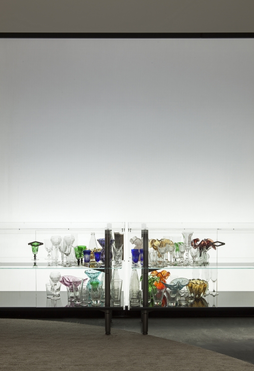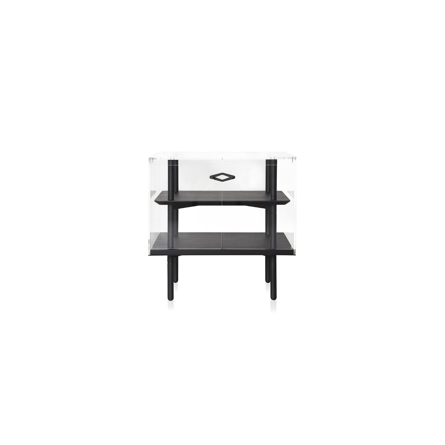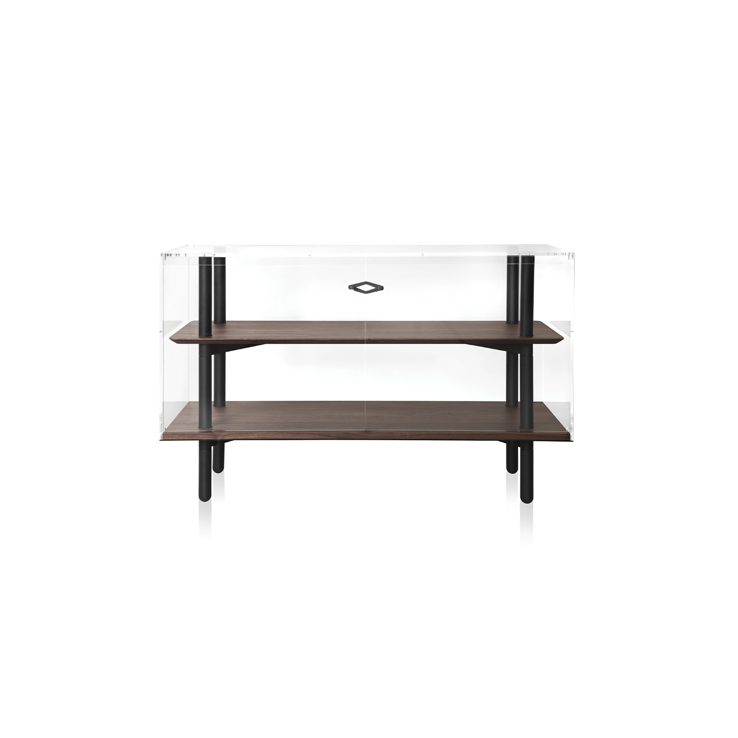 Estrutura: Laca, metalizado, aço carbono pintado Prateleiras: Laca, lâmina natural, lâmina tingida, mármore Revestimento externo: Acrílico Puxador: Laca, metalizado, aço carbono pintado