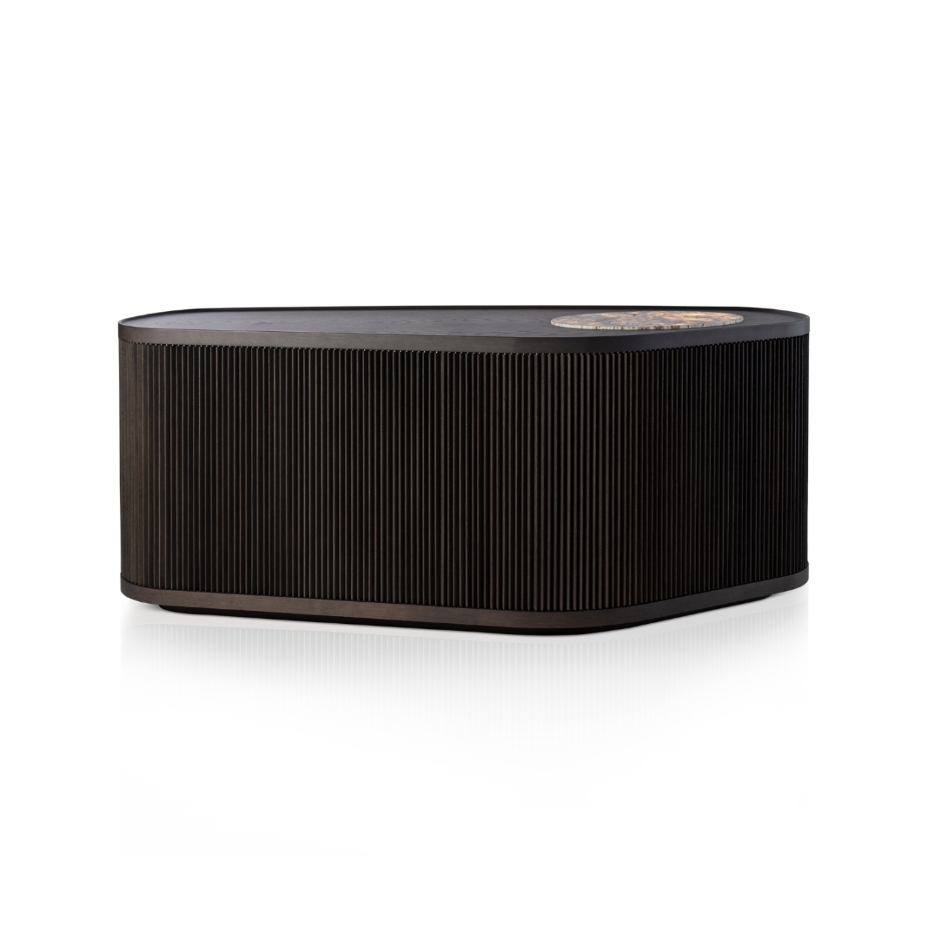 Tampo em lâmina com ou sem mármore embutido. Possui iluminaçao de fita neon com temperatura de cor 2700k dimerizável na parte superior interna. 110v ou 220v.