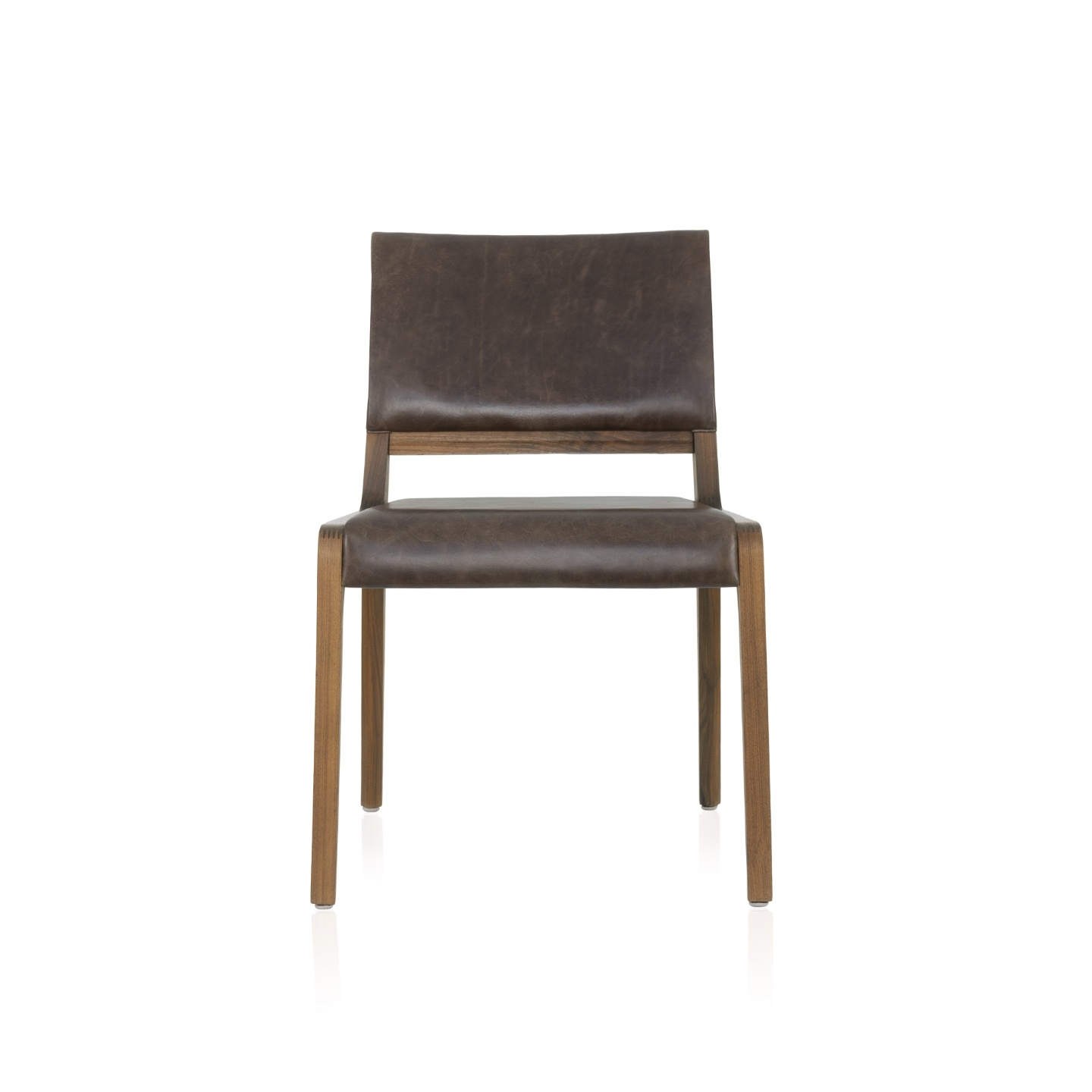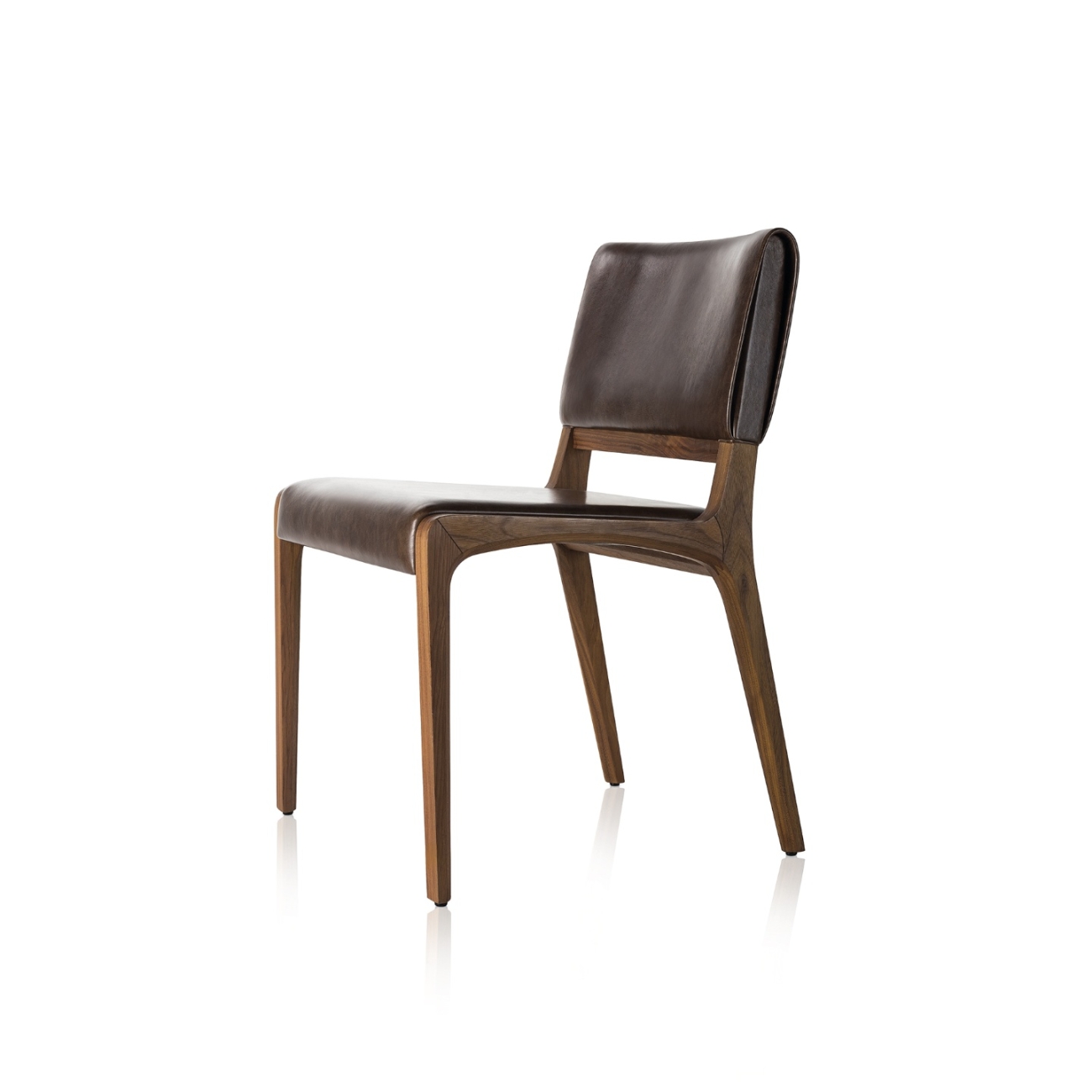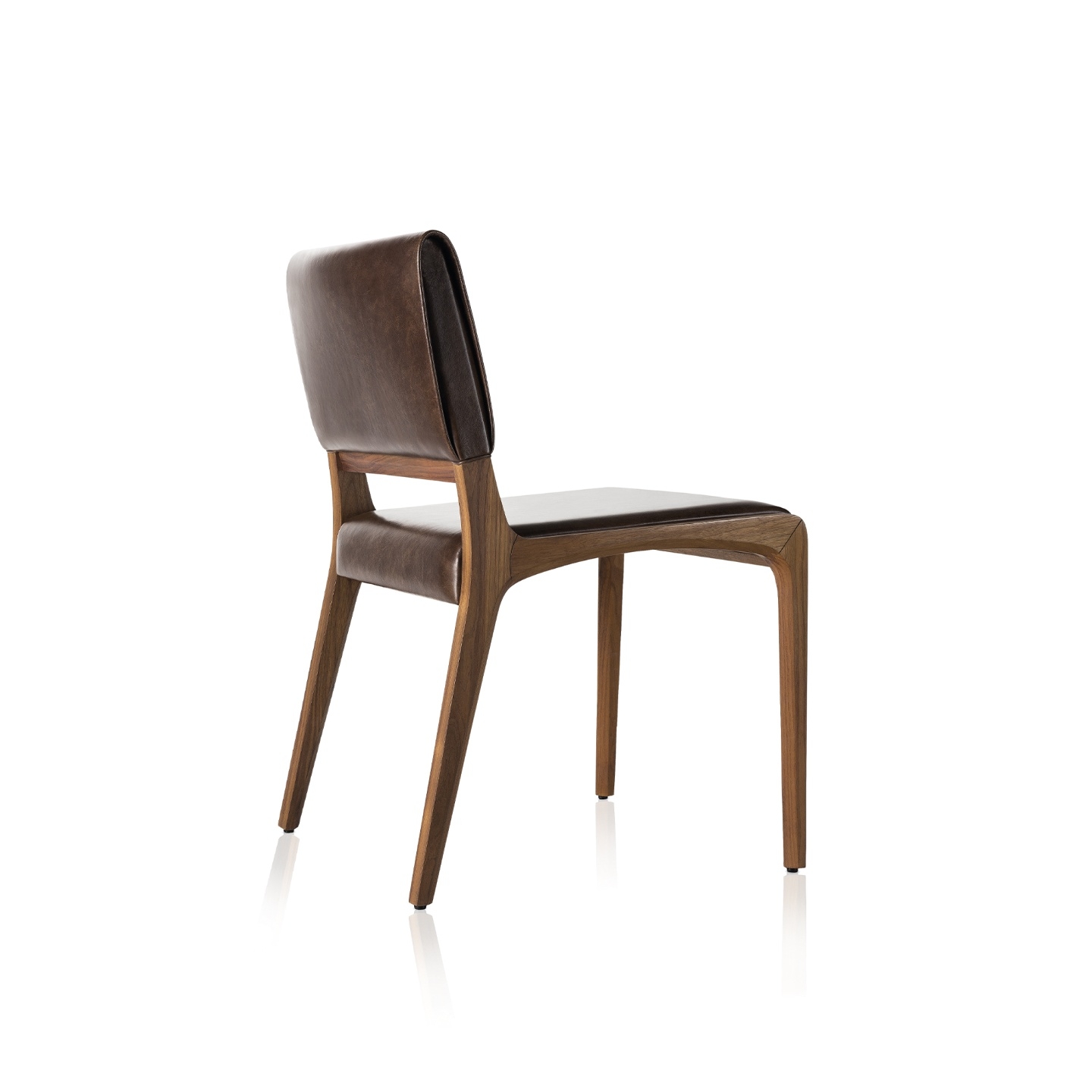 Composição simples, porém sofisticada. Seções esbeltas que evidenciam a harmonia formal e a identidade contemporânea. Os chanfros atenuam os ângulos retos e completam a bossa dos encaixes em forma de arco. Já o estofamento é leve e sutil, evidente no espaldar, onde uma capa que parece estar solta quebra qualquer monotonia de traços.