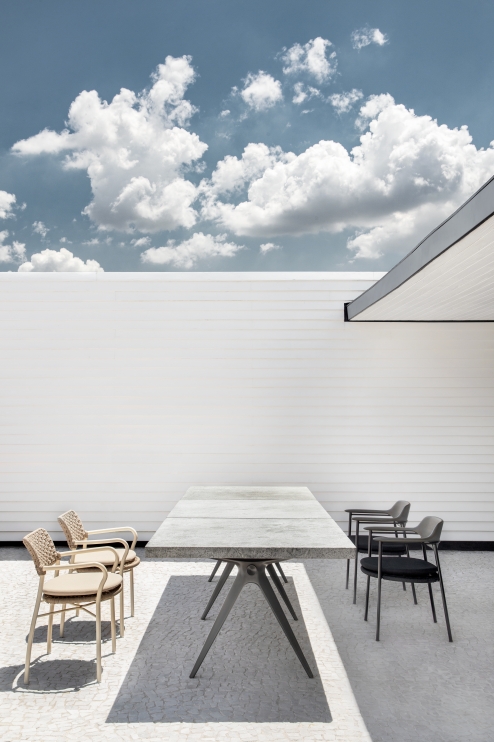 Esbelta e com uma abordagem de escala ligeiramente reduzida, esta peça é um exemplar perfeito do equilíbrio entre forma e função. Enquanto a função é atendida pelo conforto, a forma se apresenta de maneira fluida e delicada.