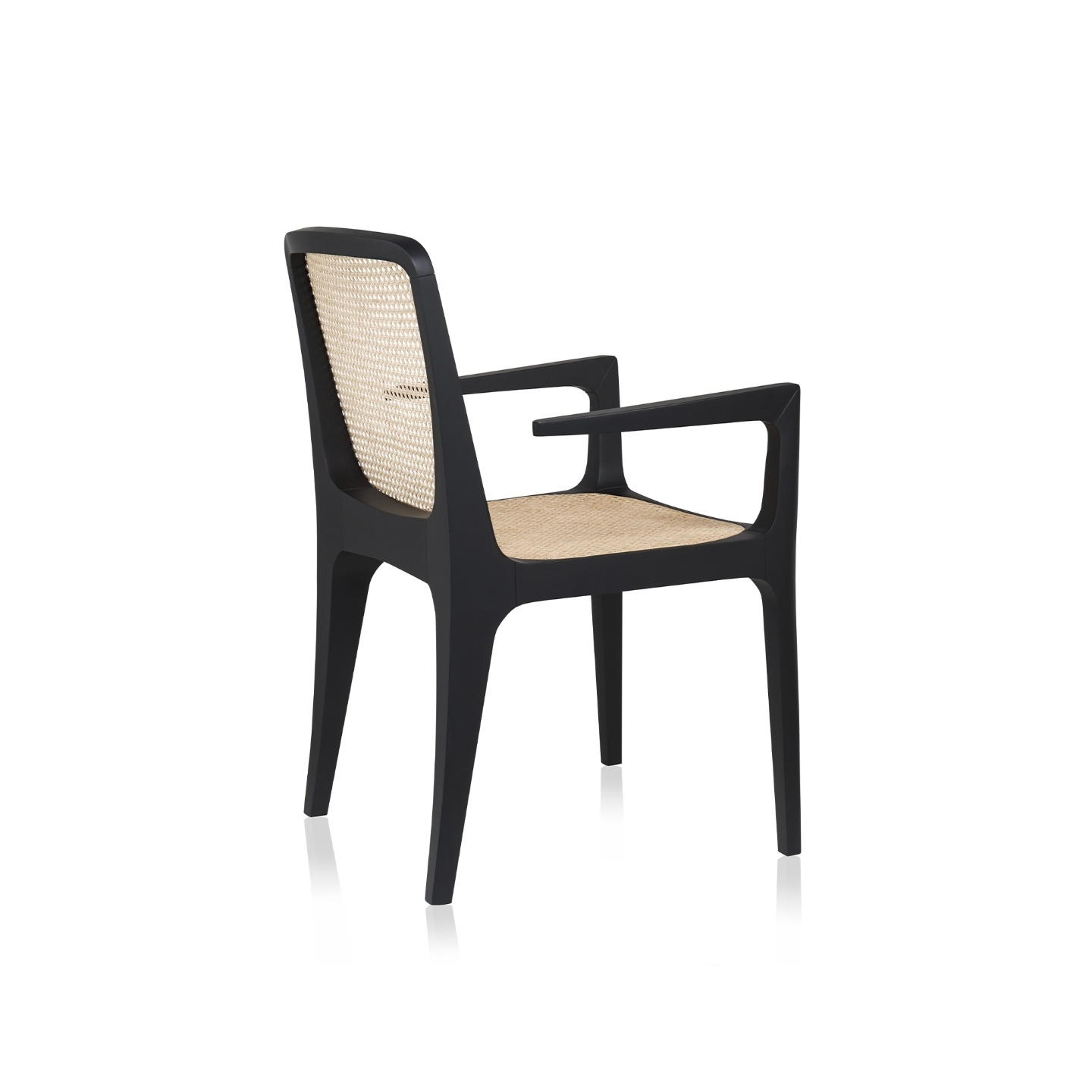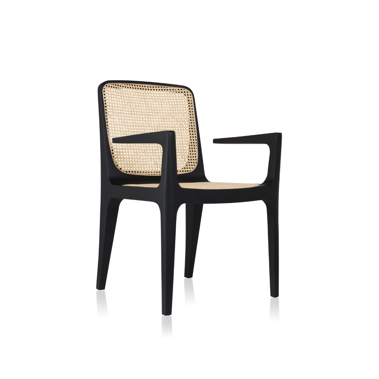 Estrutura: Madeira maciça, madeira maciça tingida Braços: Madeira maciça, madeira maciça tingida Assento e encosto: Palha de rattan, palha de aramida, estofado revestido em tecido ou couro