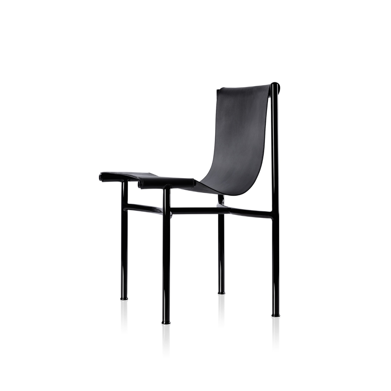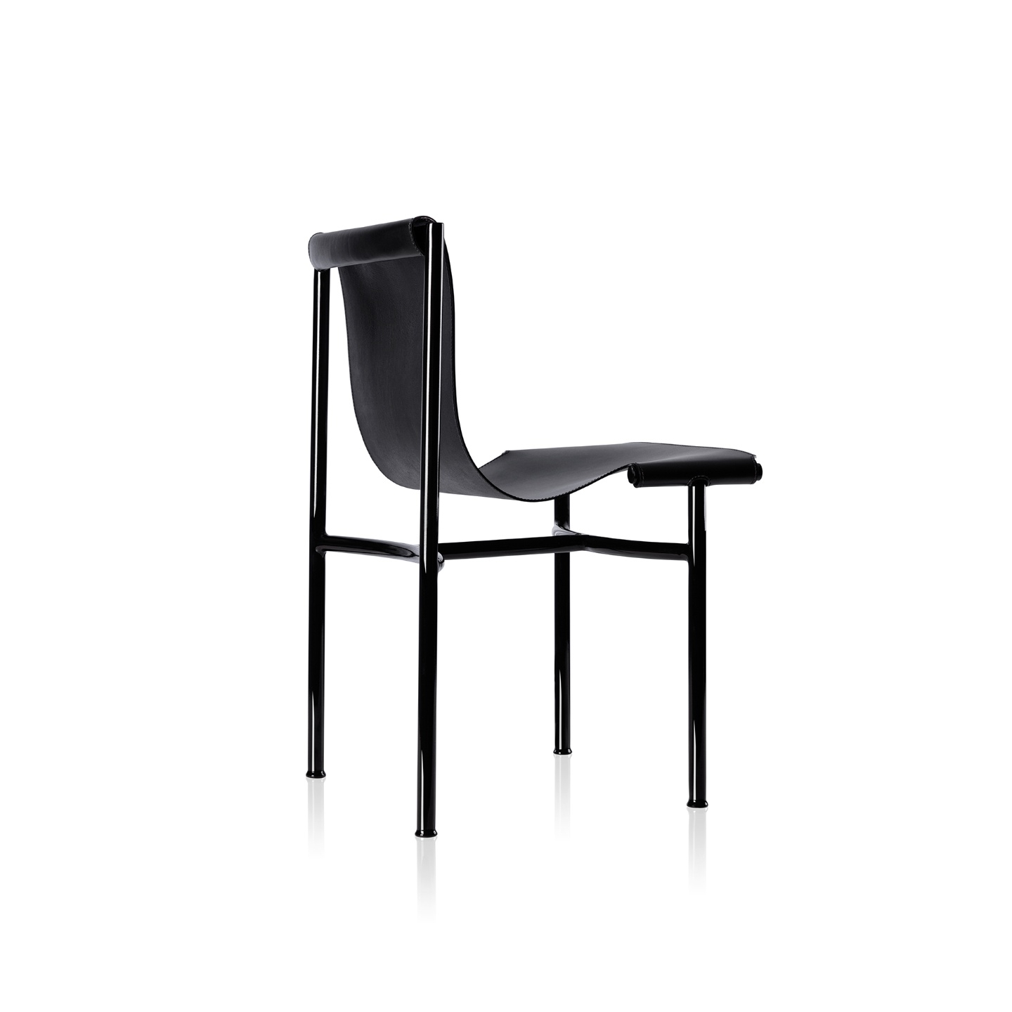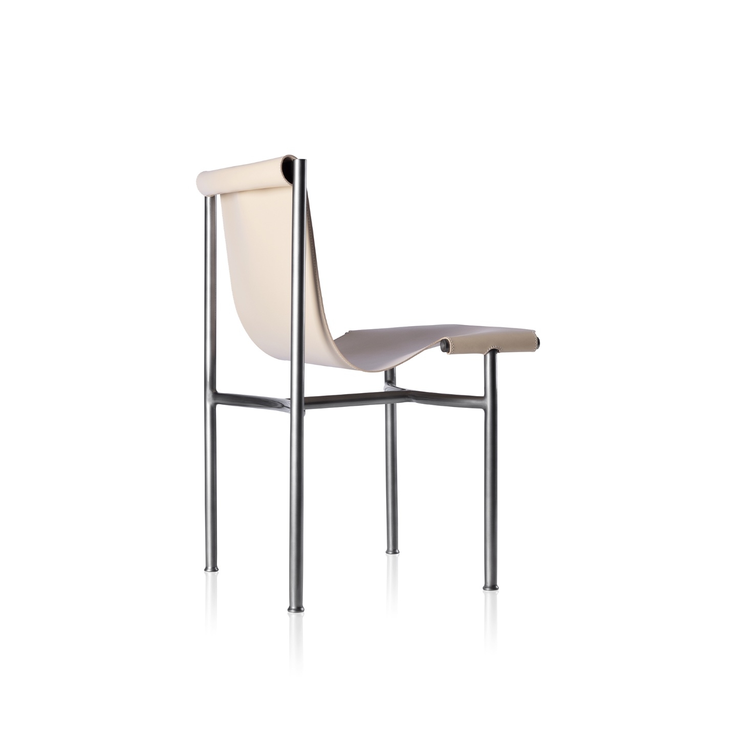 Uma cadeira de abordagem esbelta, e apenas dois materiais: metal e couro sola. Os materiais e suas linhas esguias remetem ao tradicional mobiliário modernista brasileiro.