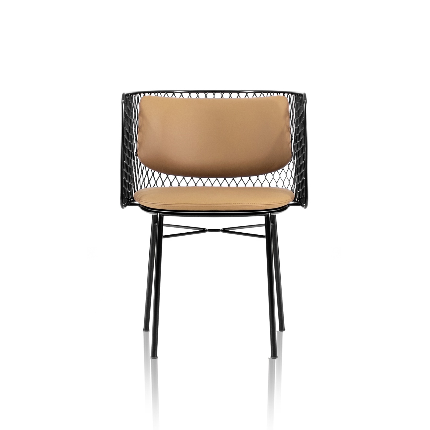 Estrutura: Metal, pintura eletroestática Assento e encosto: Estofado revestido em tecido