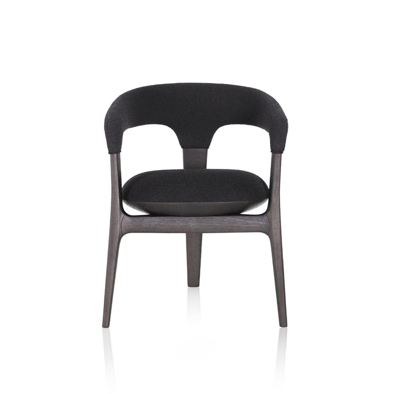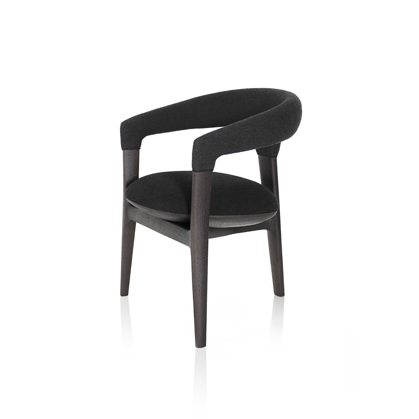 Estrutura: Madeira maciça, madeira maciça tingida Encosto: Estofado revestido em tecido ou couro Braços: Estofado revestido em tecido ou couro Assento superior: Estofado revestido em tecido ou couro Assento inferior: Madeira maciça, madeira maciça tingida