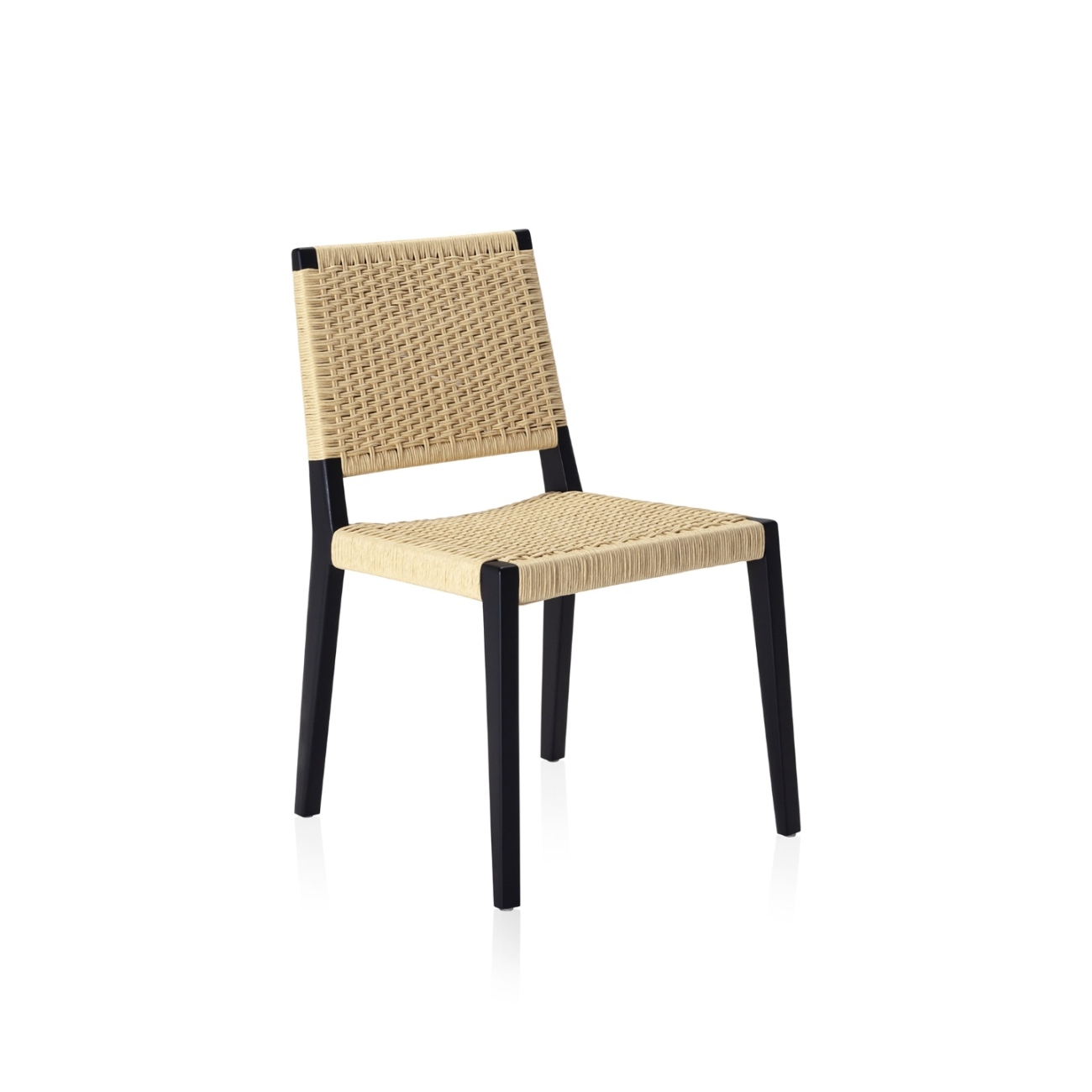 Estrutura: Madeira maciça, madeira maciça tingida Assento e encosto: Corda náutica