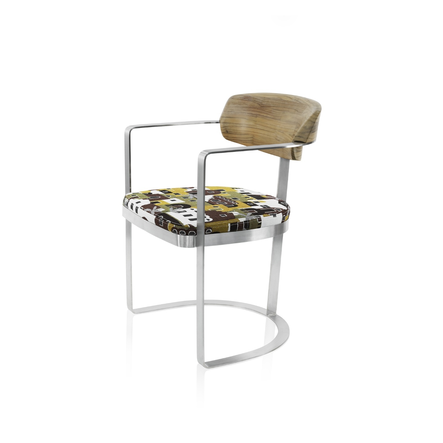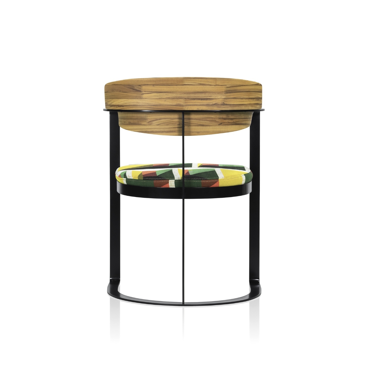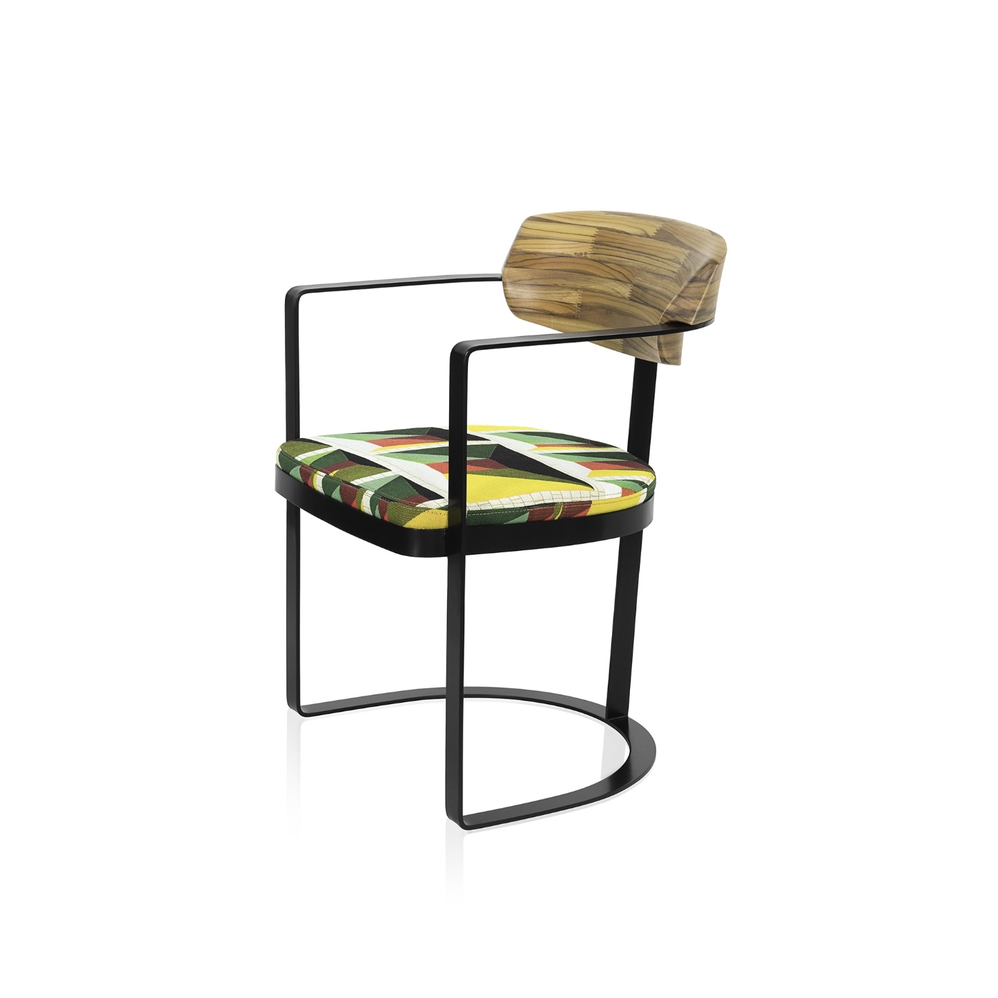 A coleção Due combina proporções e delicadeza de produtos indoor com a durabilidade de materiais usados em produtos outdoor. Sua estrutura apresenta um design clássico com três suportes verticais conectados por dois arcos, formando braços e base. O encosto de madeira parece flutuar sobre a estrutura, criando uma sensação de leveza, enquanto o assento estofado é sobreposto na base com corda náutica para permitir a permeabilidade da água em caso de chuva.