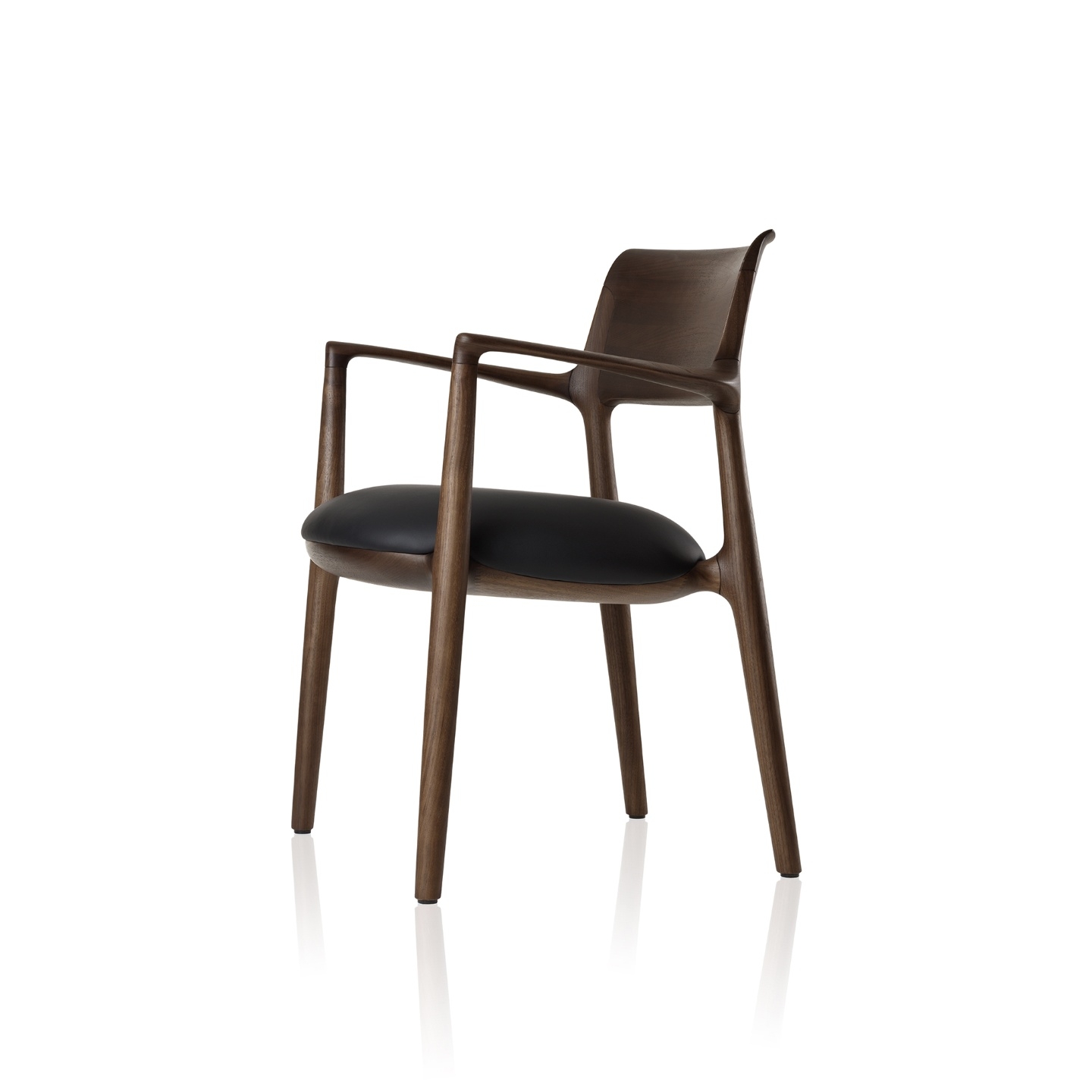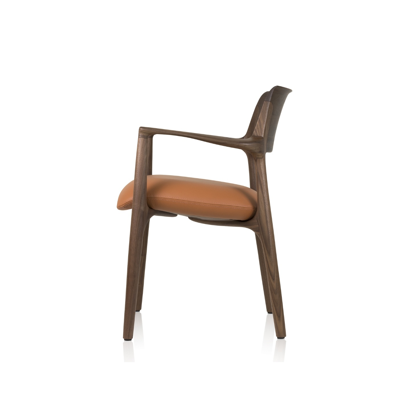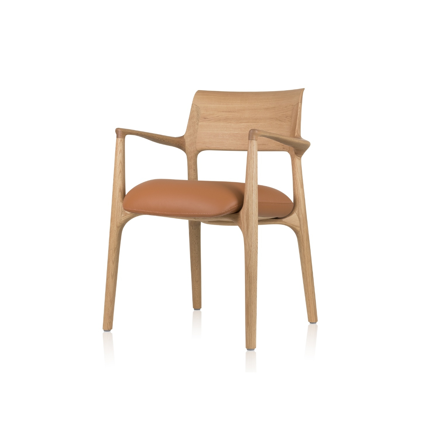 Estrutura: Madeira maciça, madeira maciça tingida Encosto: Madeira maciça, madeira maciça tingida Braços: Madeira maciça, madeira maciça tingida Assento: Estofado revestido em tecido ou couro