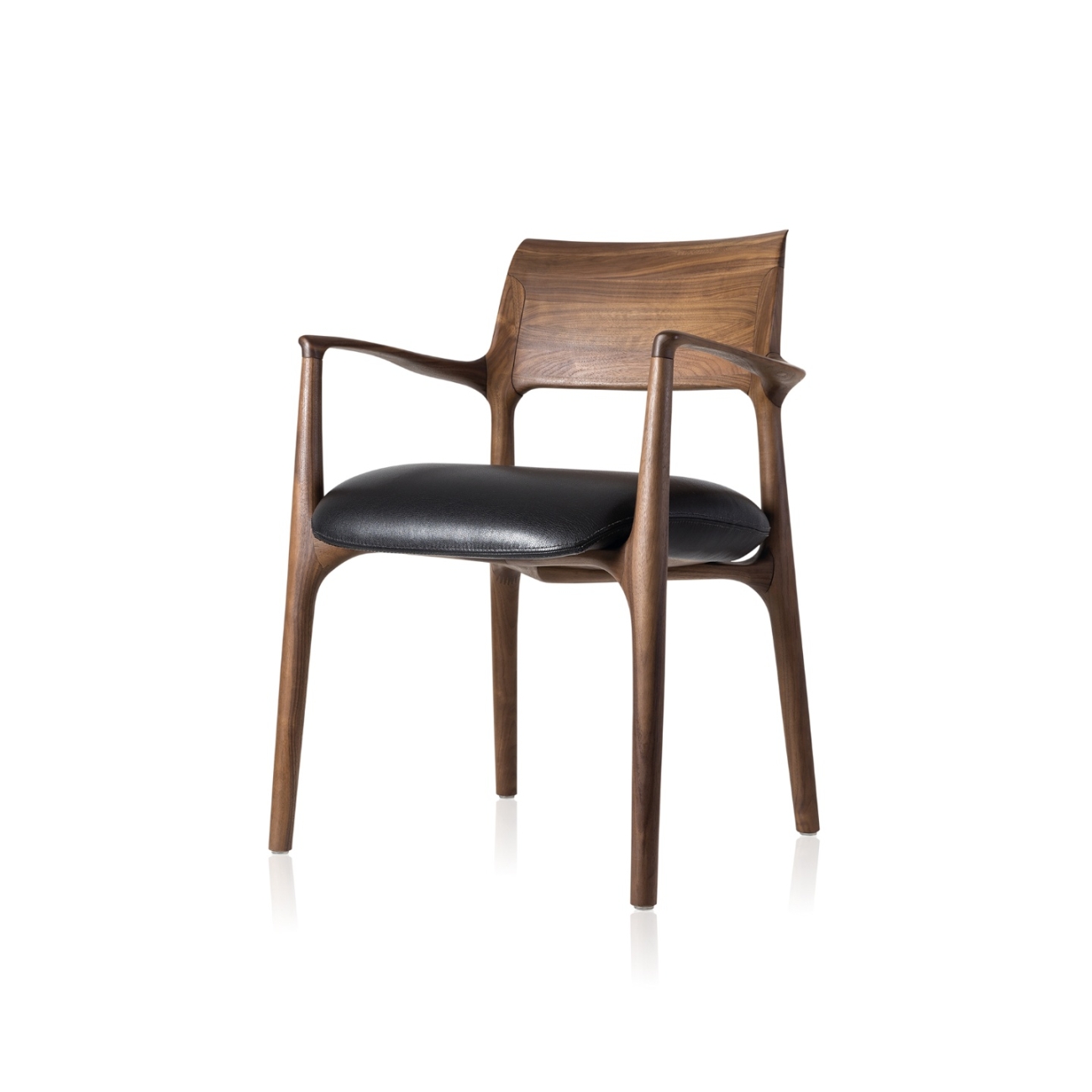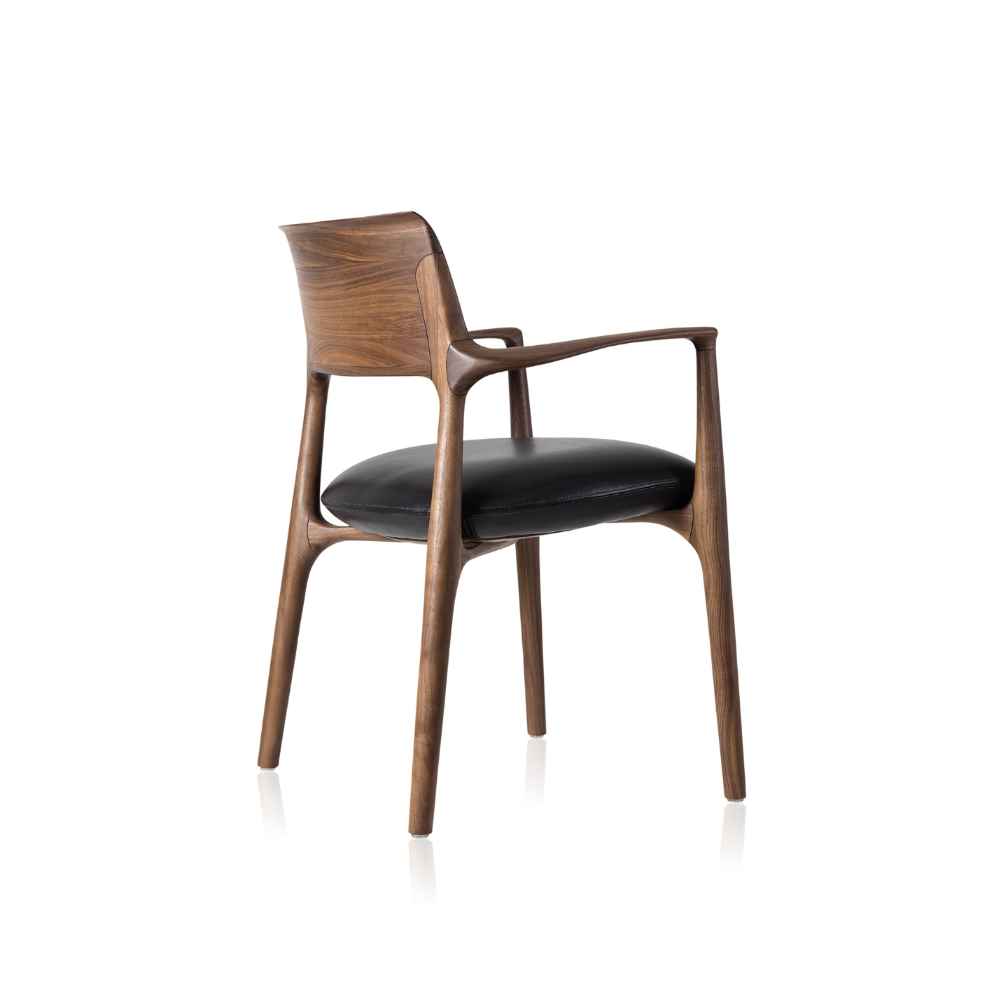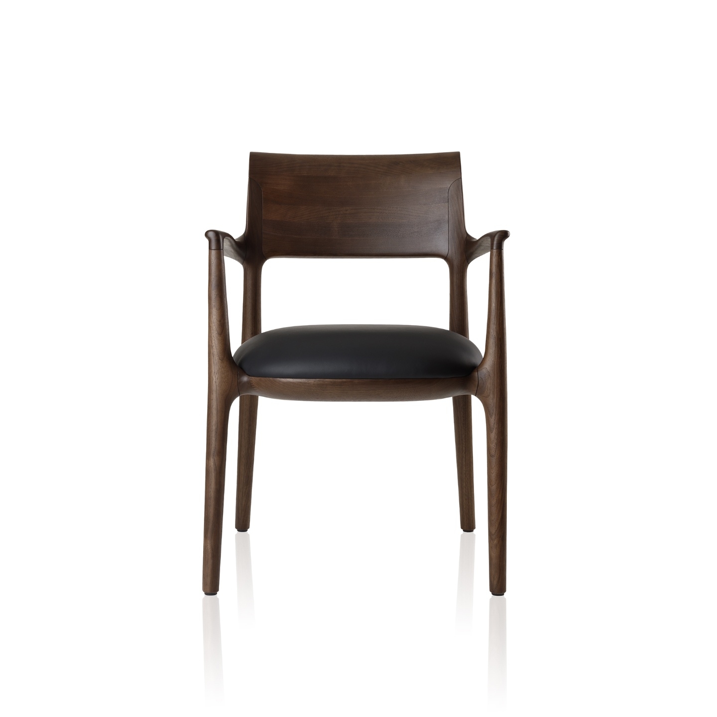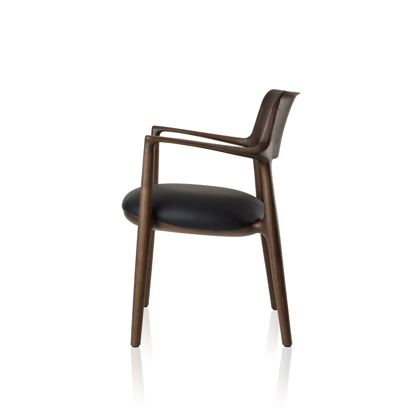 Estrutura: Madeira maciça, madeira maciça tingida Encosto: Madeira maciça, madeira maciça tingida Braços: Madeira maciça, madeira maciça tingida Assento: Estofado revestido em tecido ou couro