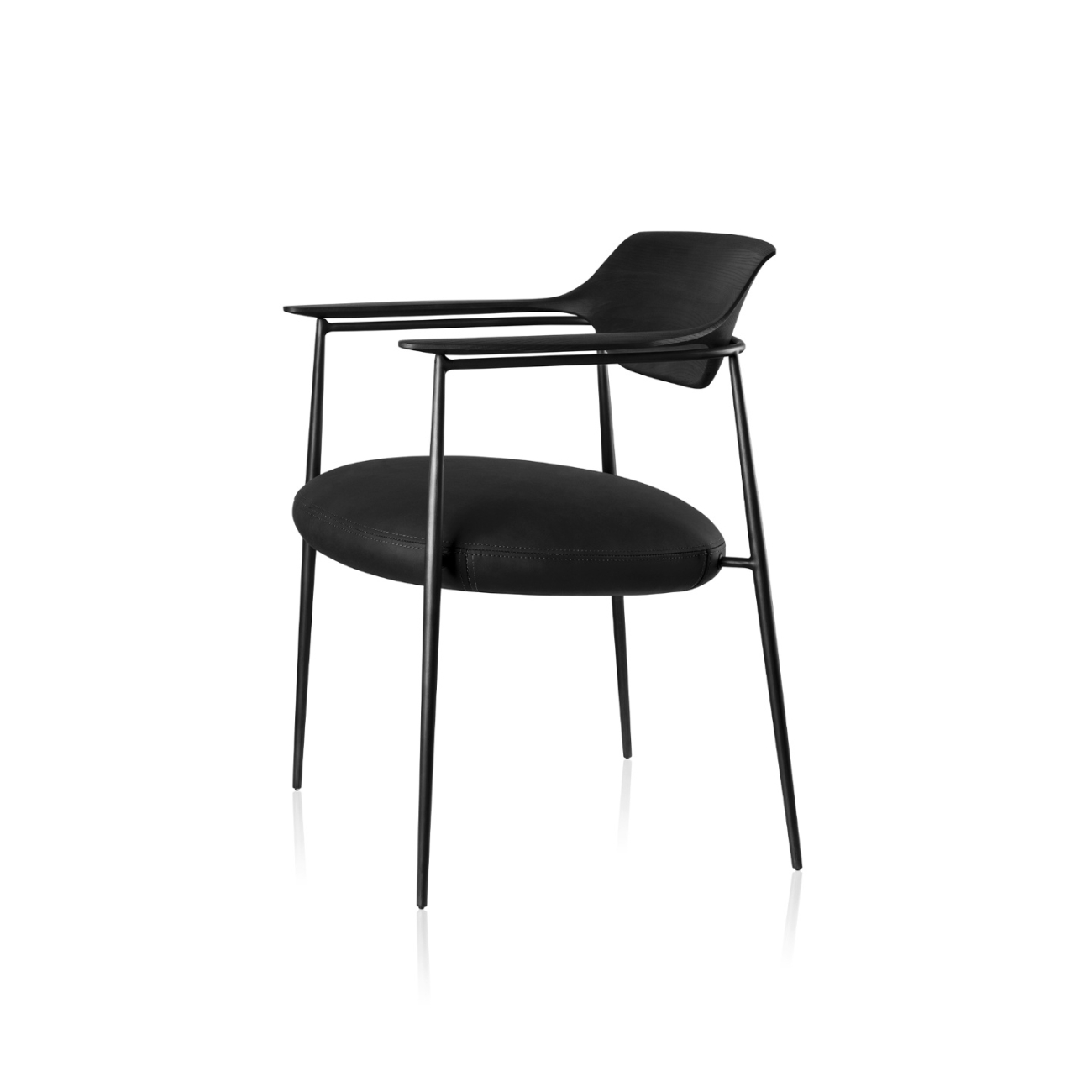 Estrutura: Metalizado, metal Braços: Madeira maciça, madeira maciça tingida Encosto: Madeira maciça, madeira maciça tingida Assento: Estofado revestido em tecido ou couro